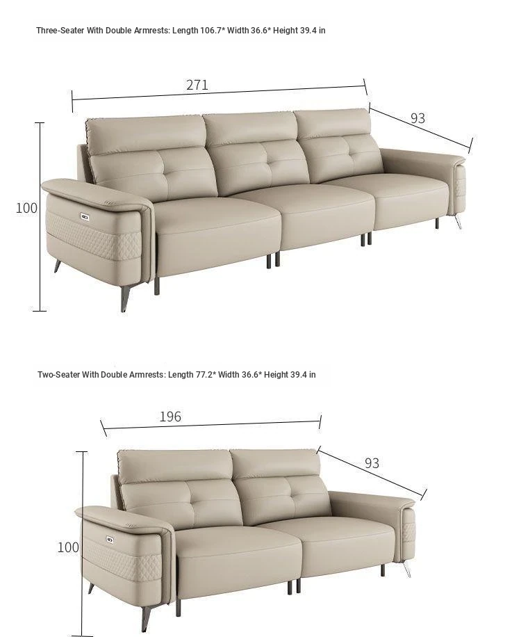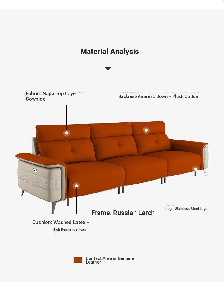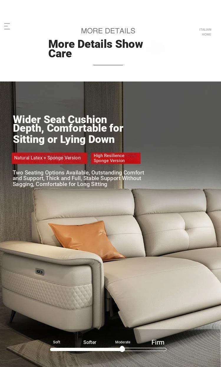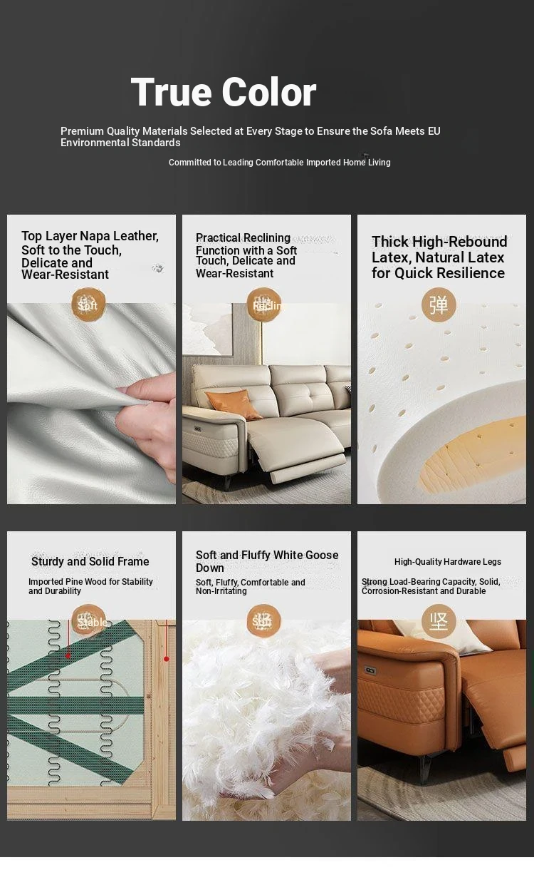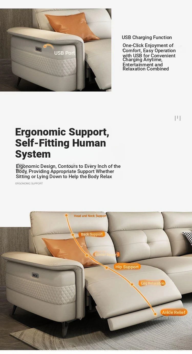 Premium Italian Minimalist Modern Luxury Adjustable Electric Leather Sofa Set for Small to Medium Living Rooms - Perfect for Stylish Living Spaces