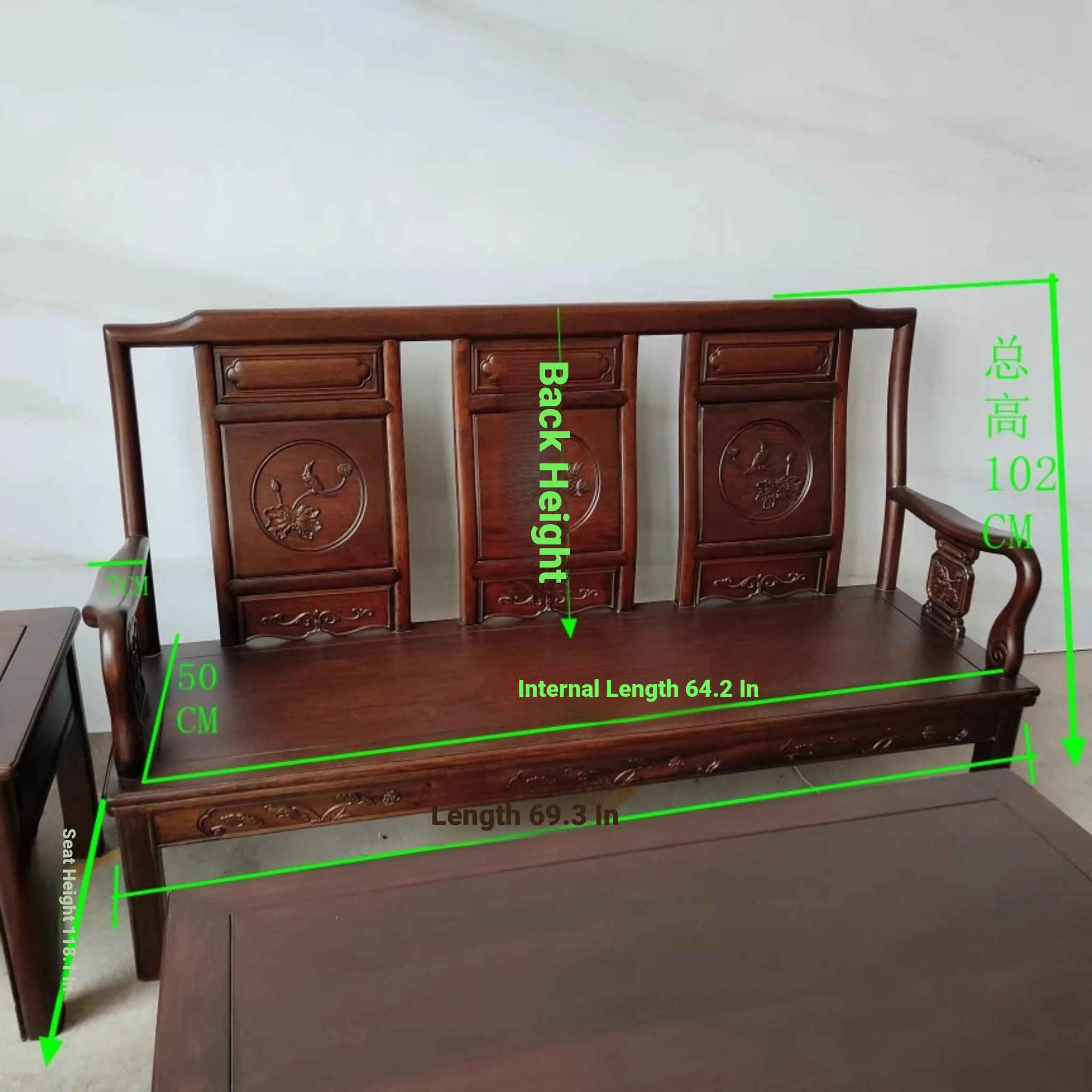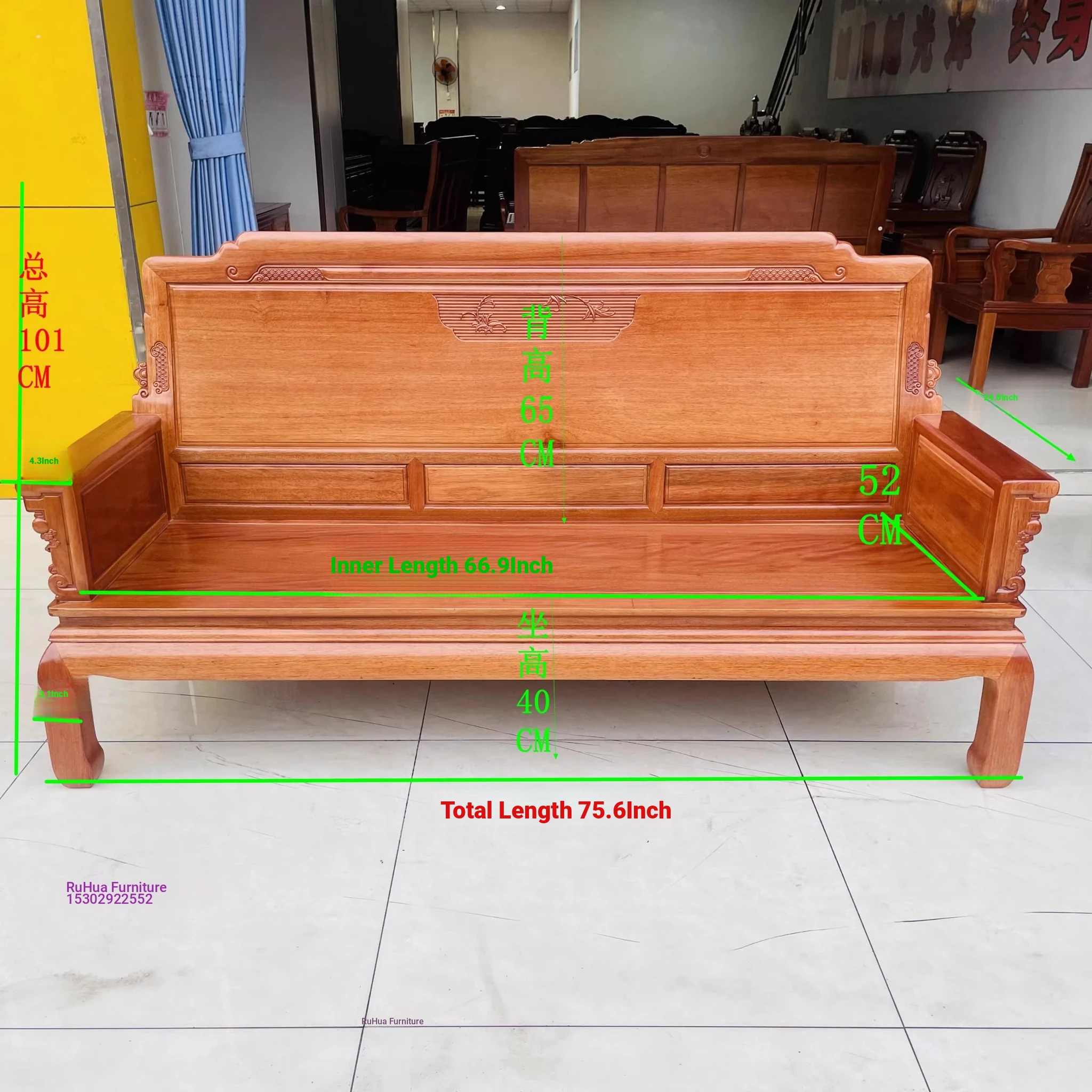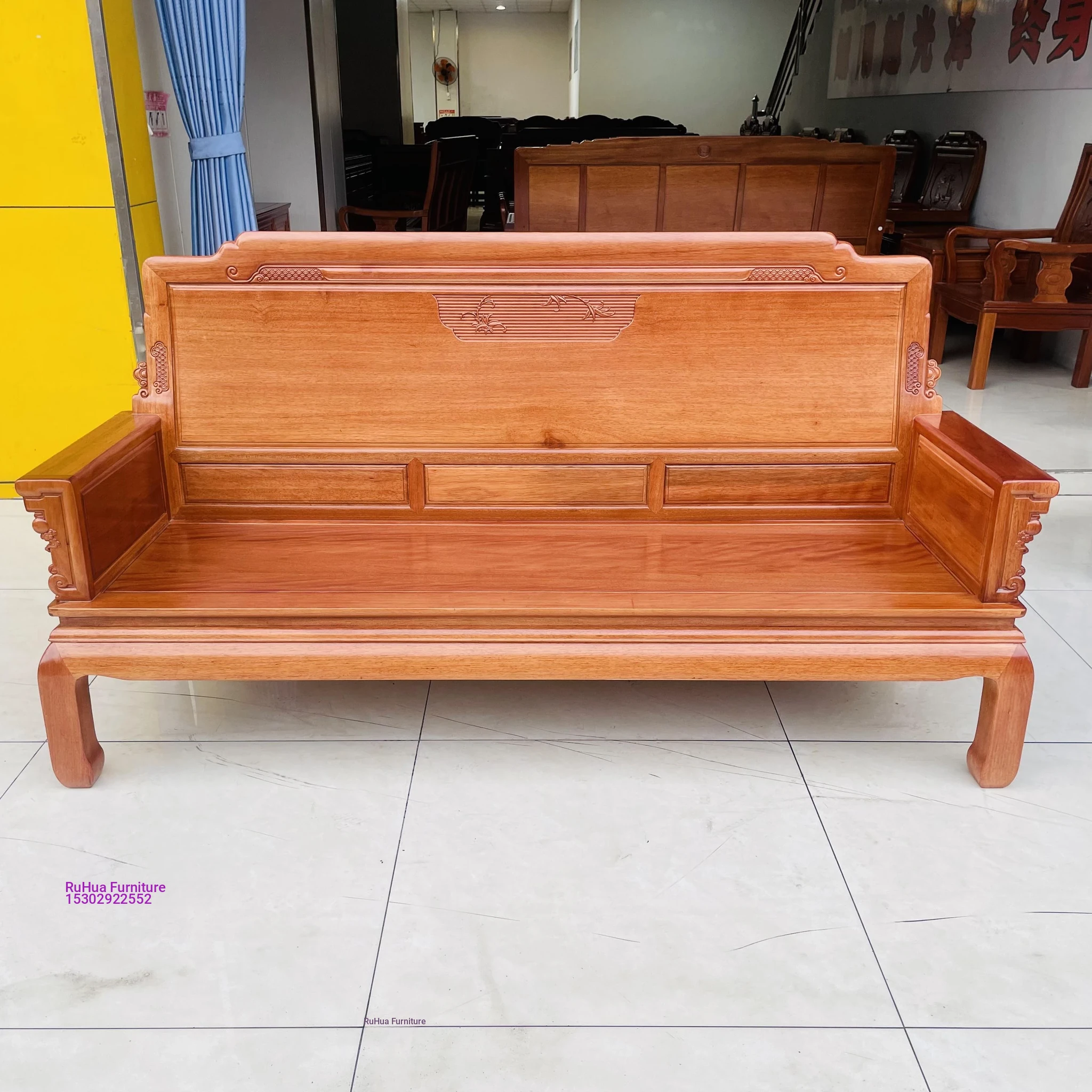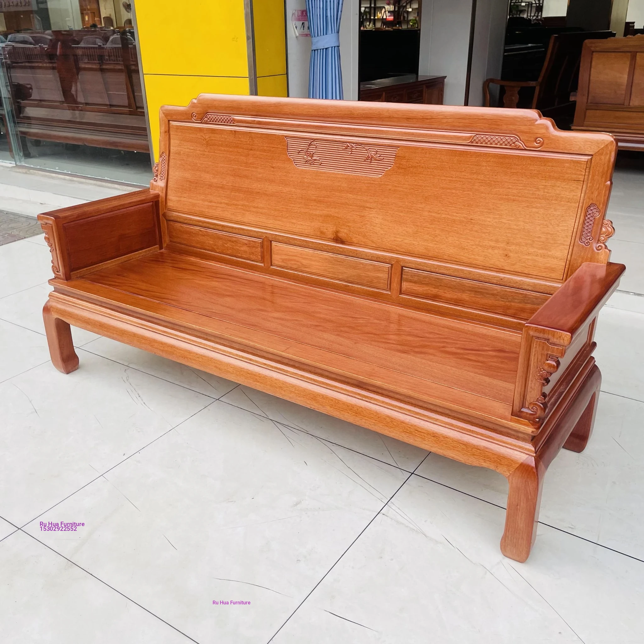 Solid Wood Red Sandalwood Pineapple Three-Seater Sofa for Small Spaces - Elegant and Durable Golden Pear and Plum Design, Directly from Manufacturer for Your Living Room
