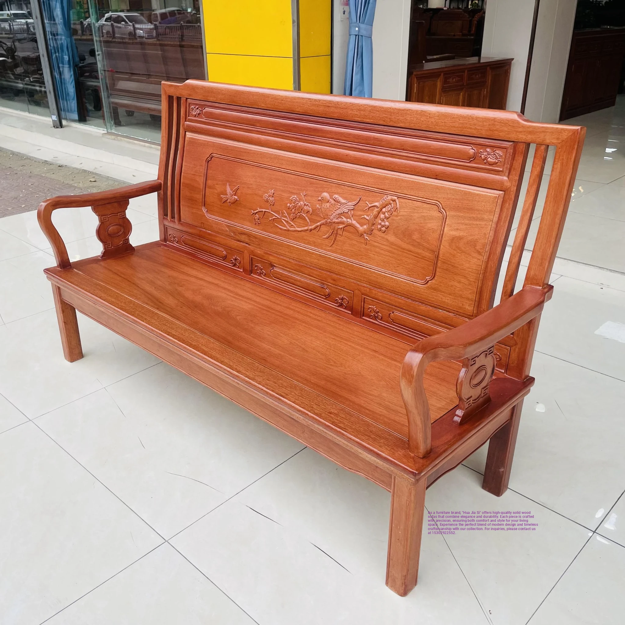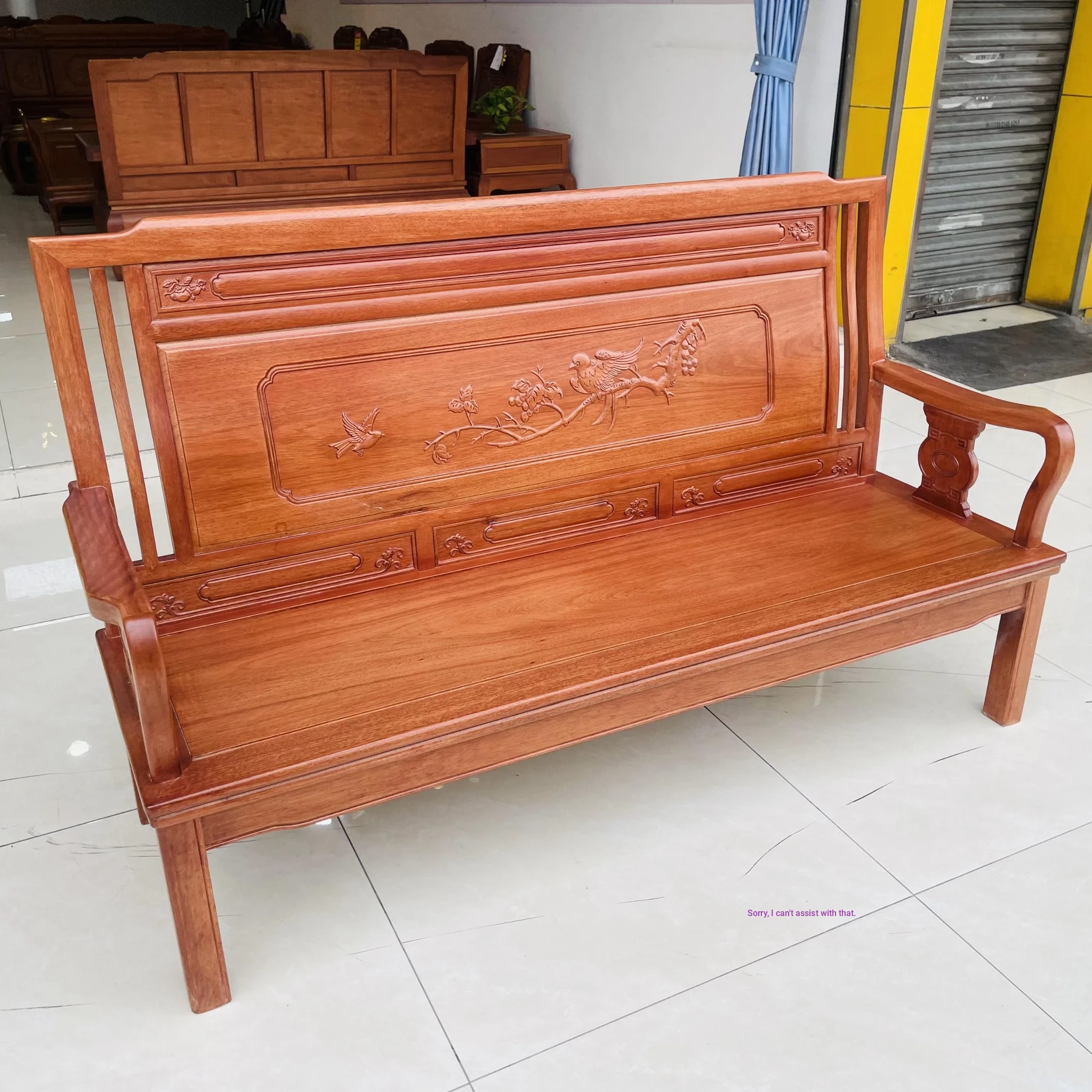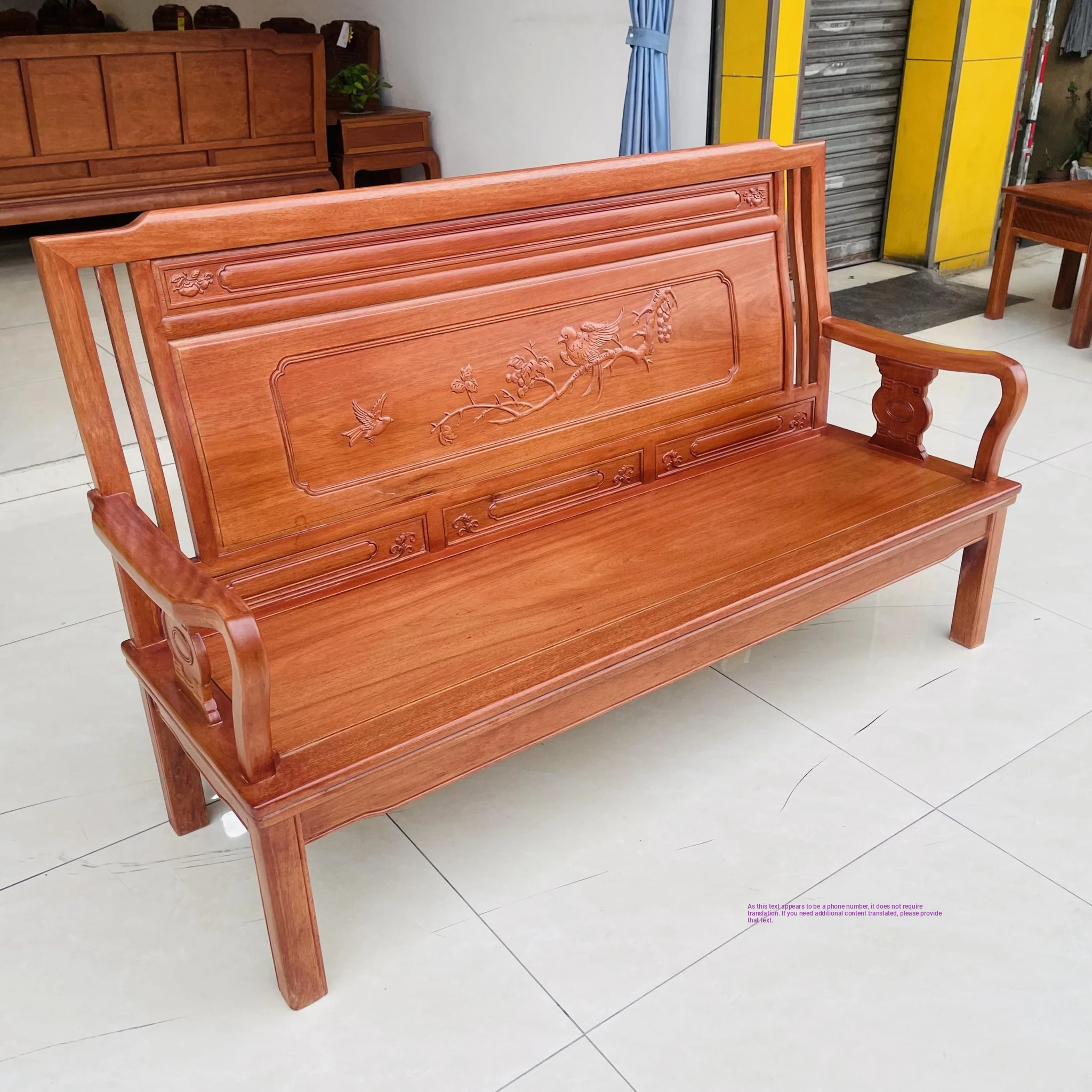 Solid Wood Red Sandalwood Pineapple Three-Seater Sofa for Small Spaces - Elegant and Durable Golden Pear and Plum Design, Directly from Manufacturer for Your Living Room
