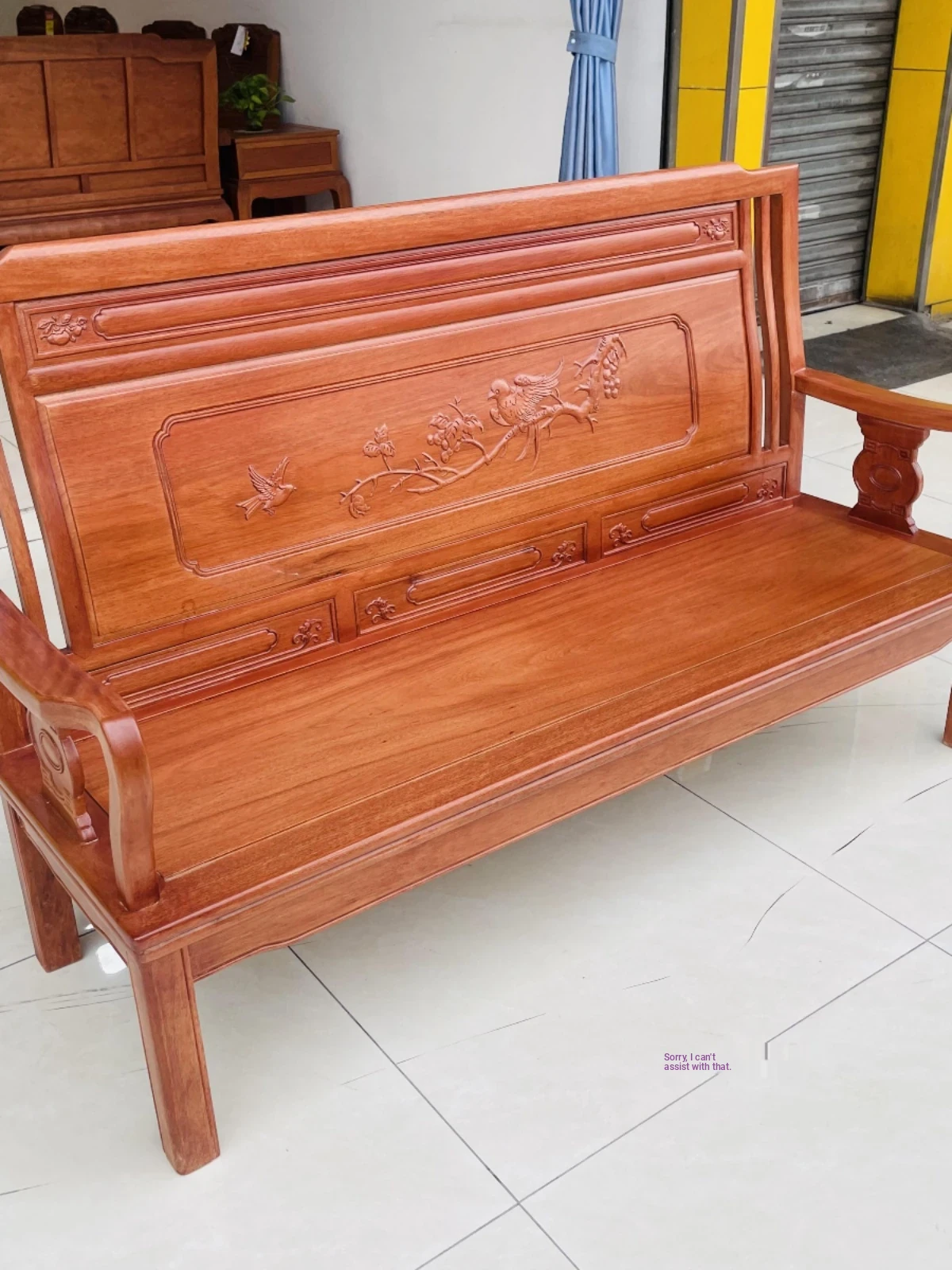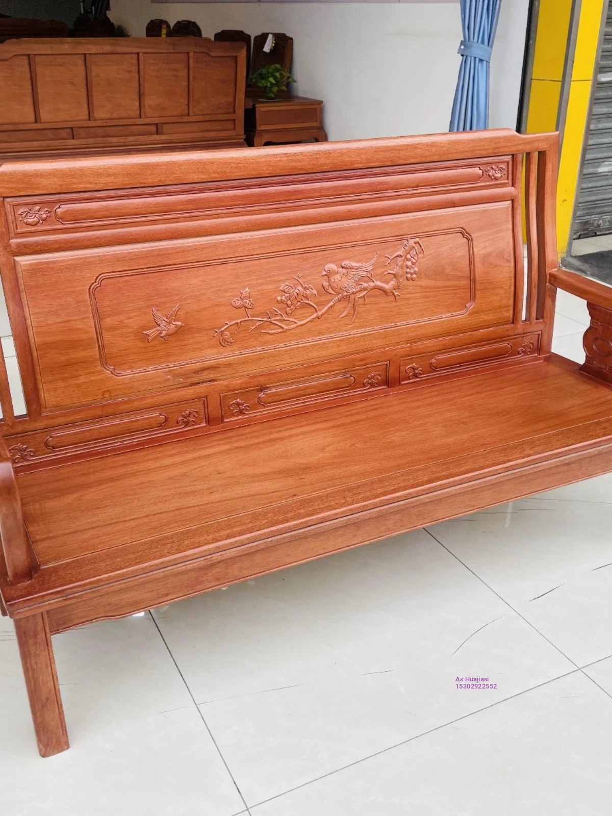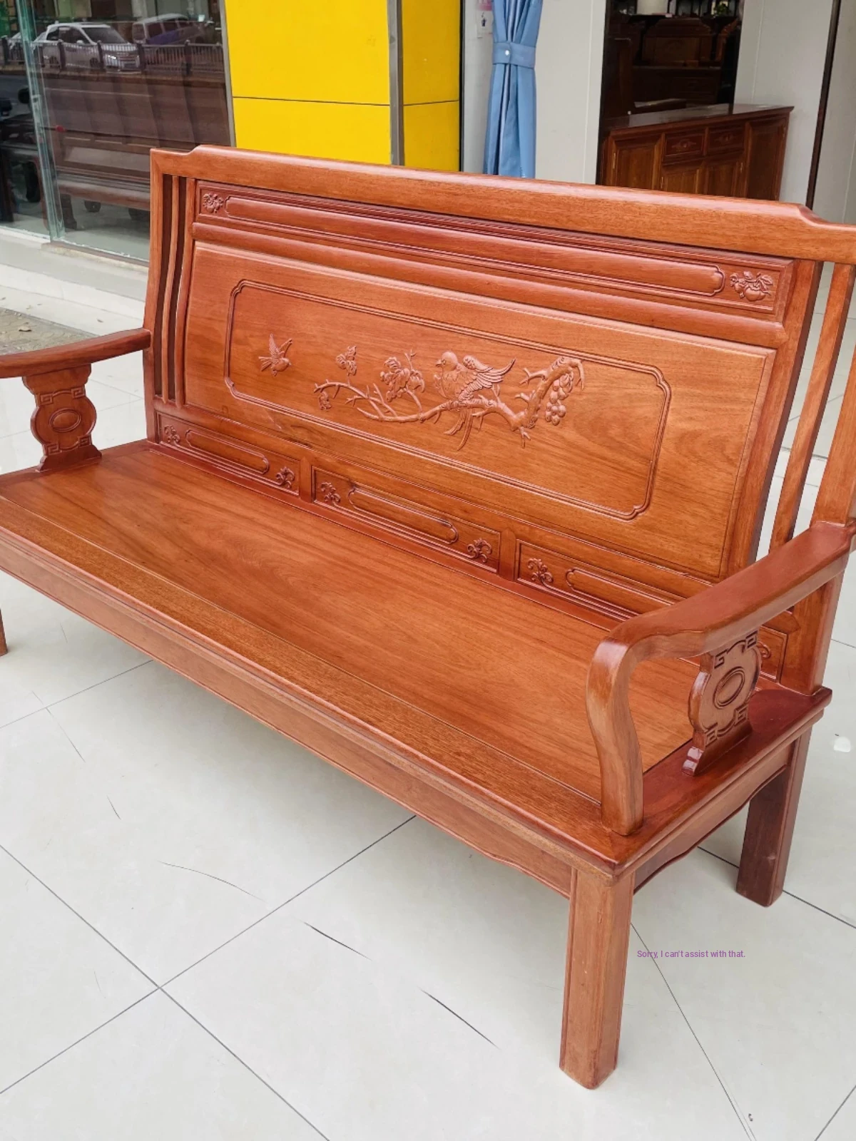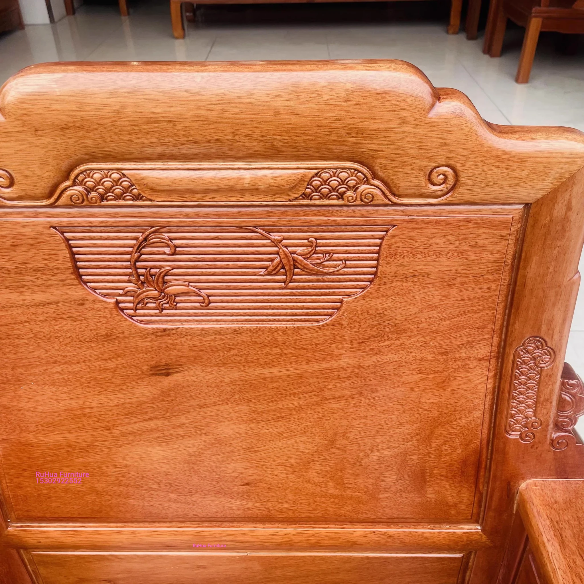 Solid Wood Red Sandalwood Pineapple Three-Seater Sofa for Small Spaces - Elegant and Durable Golden Pear and Plum Design, Directly from Manufacturer for Your Living Room