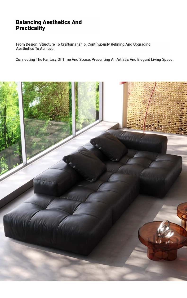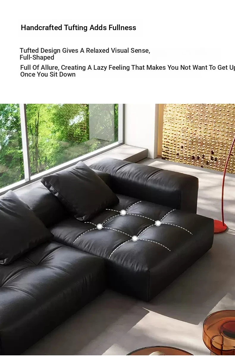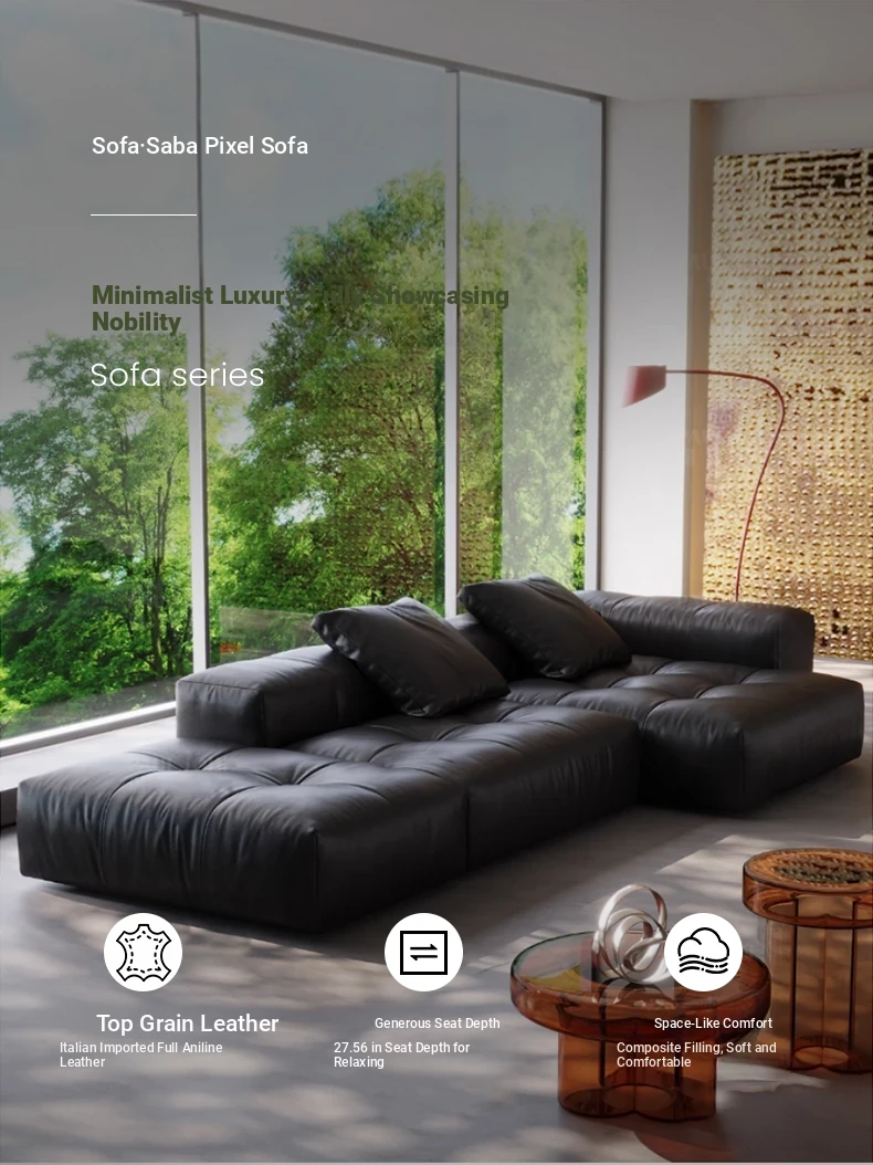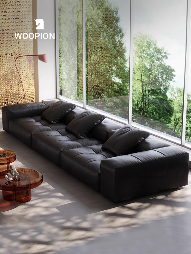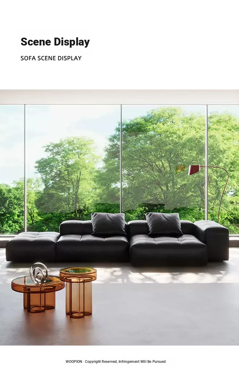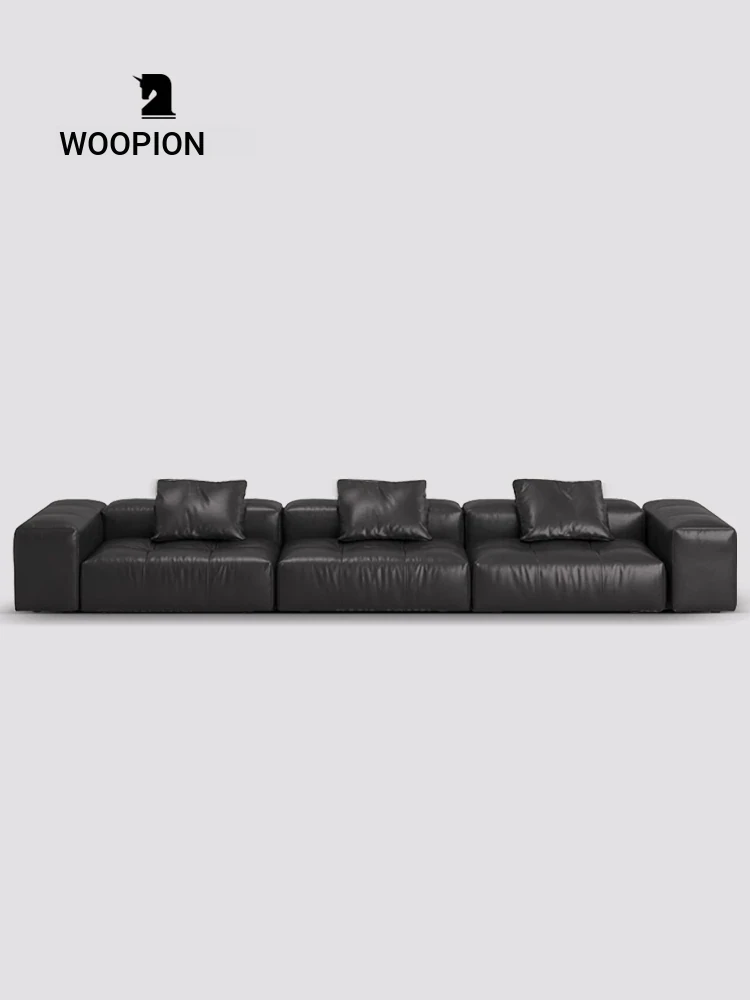 Wopai Pixel Genuine Leather Sofa - High-End Italian Minimalist Designer Style, Full Grain Black Cowhide for Luxurious Living Rooms