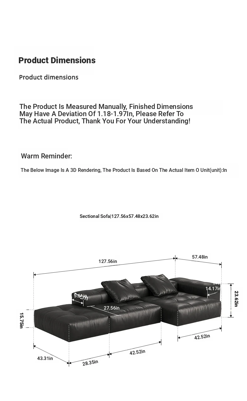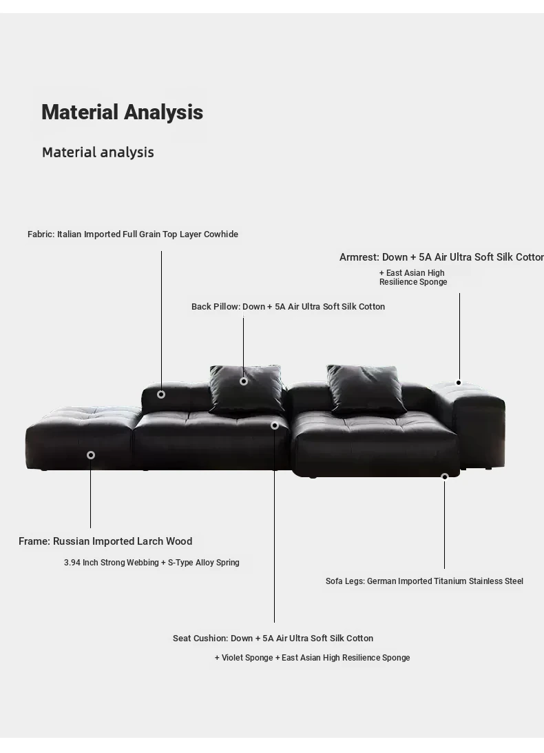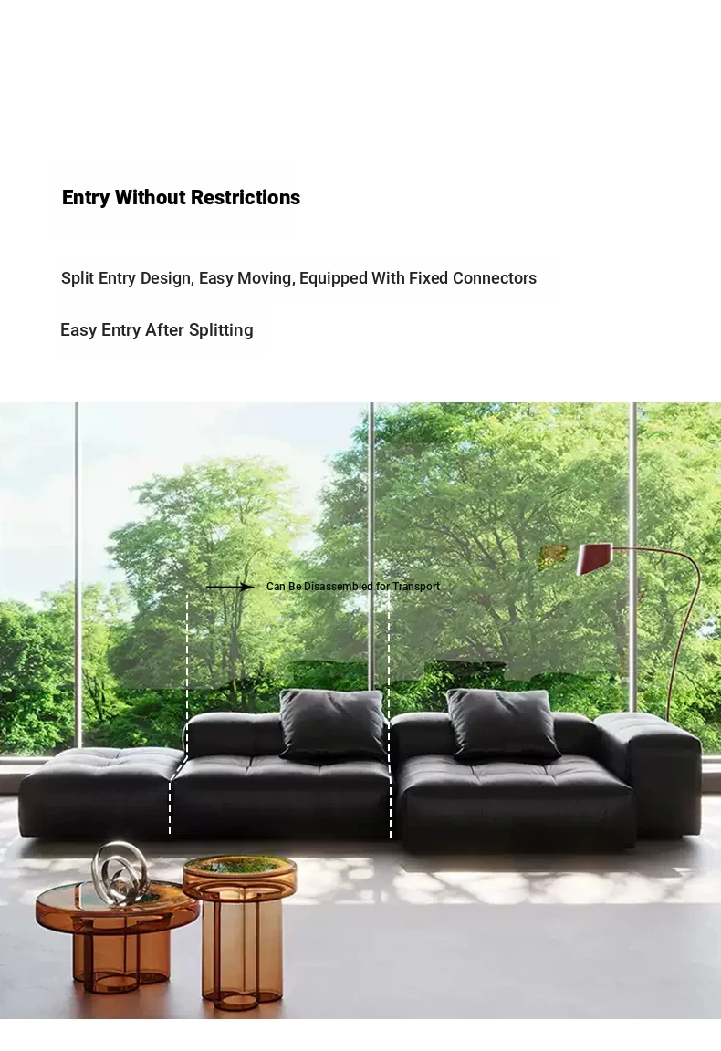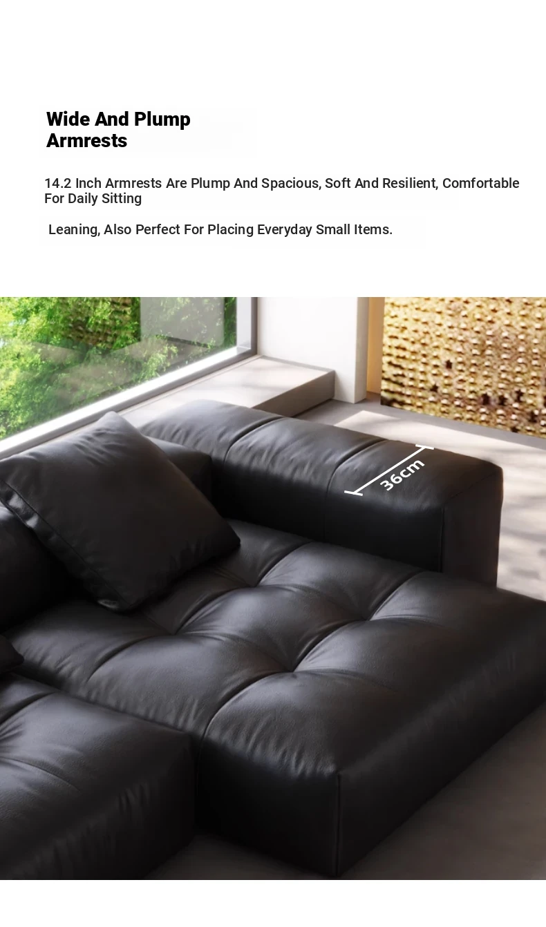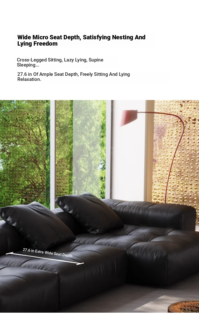 Wopai Pixel Genuine Leather Sofa - High-End Italian Minimalist Designer Style, Full Grain Black Cowhide for Luxurious Living Rooms