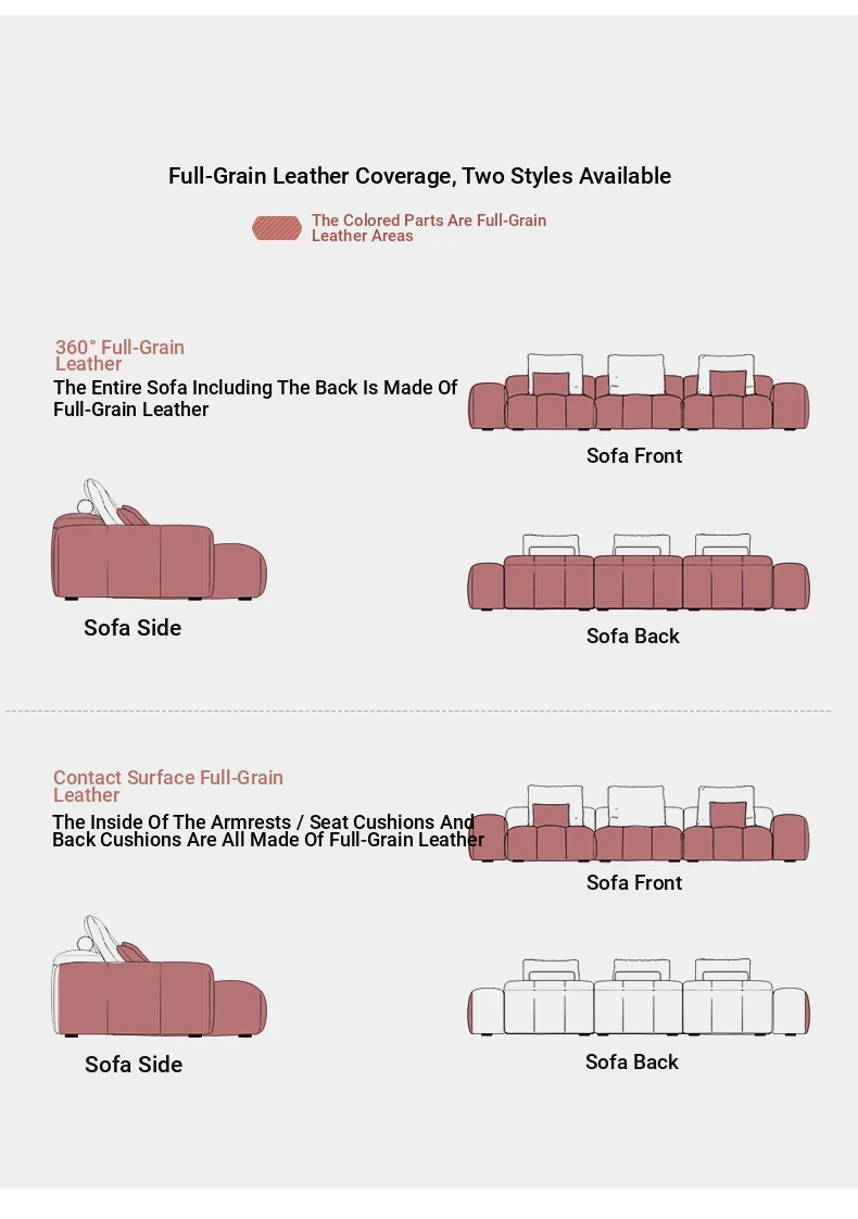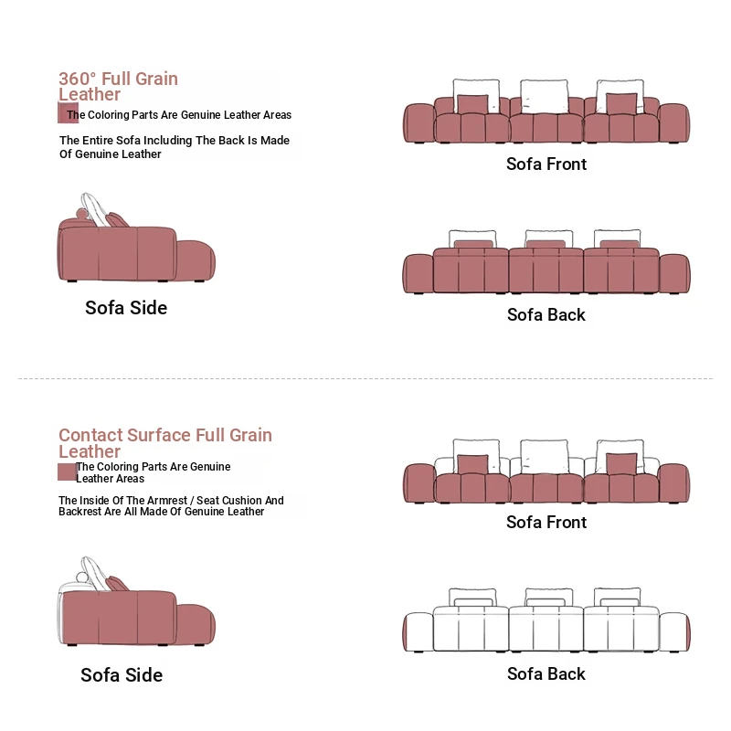 Difference between [contact surface top layer cowhide covering] and [360 ° full top layer cowhide covering]