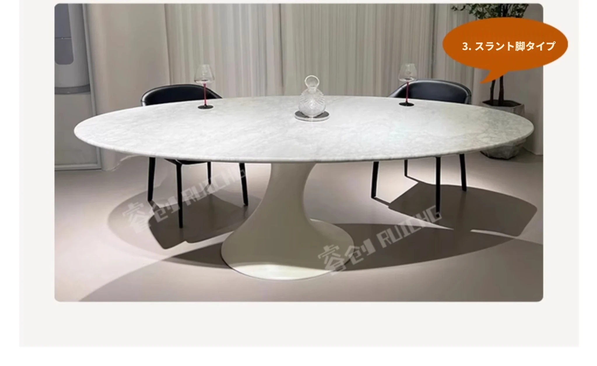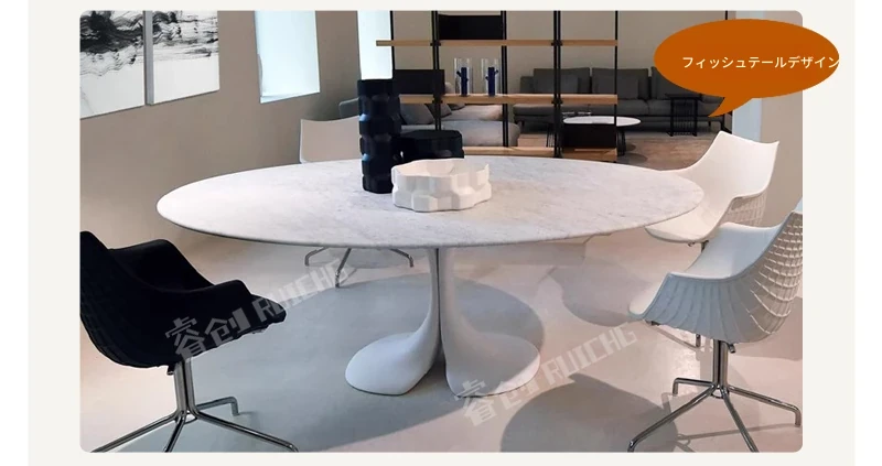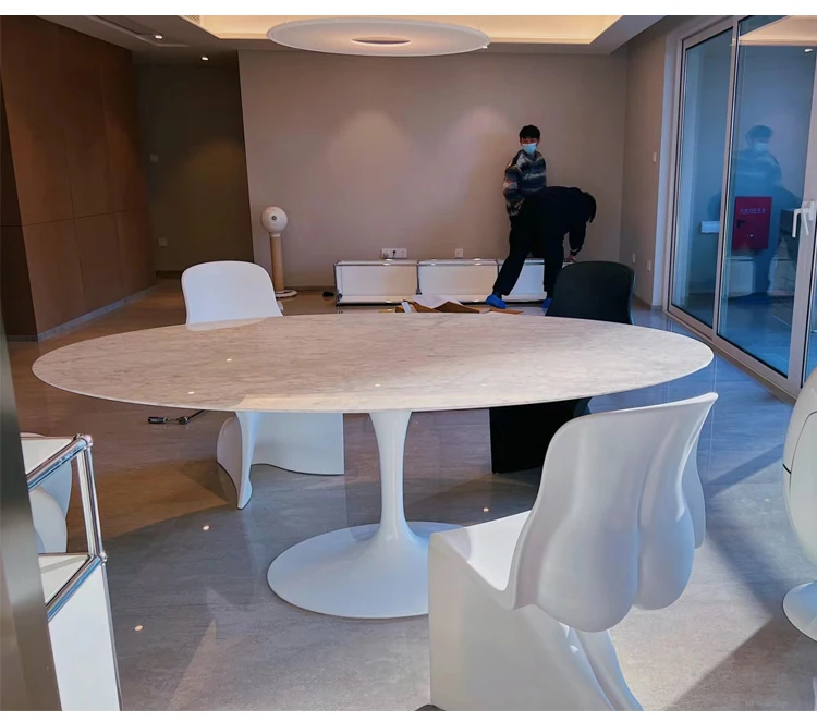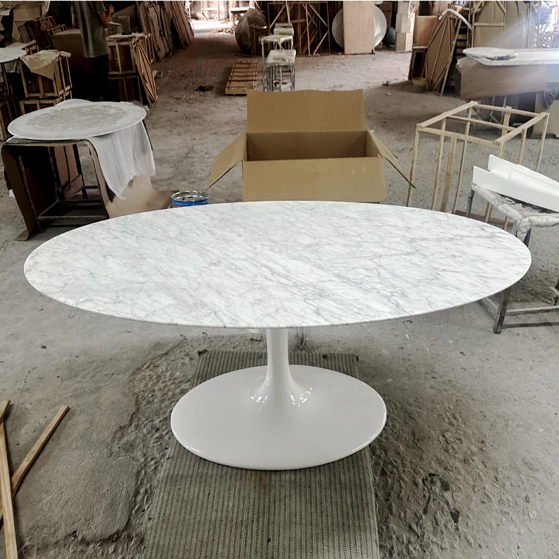 チューリップオーバルテーブル-中花白大理石【1.8メートル】