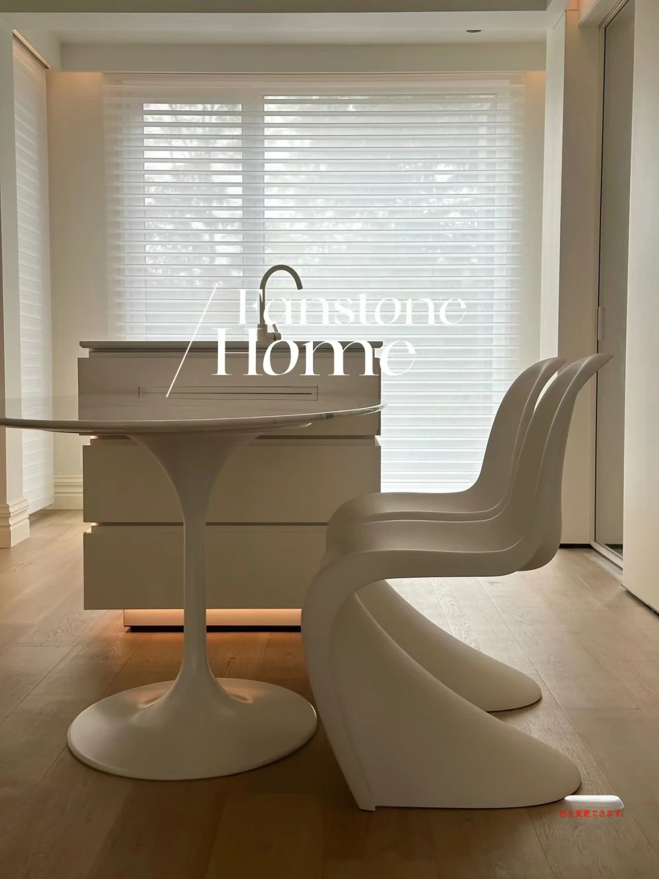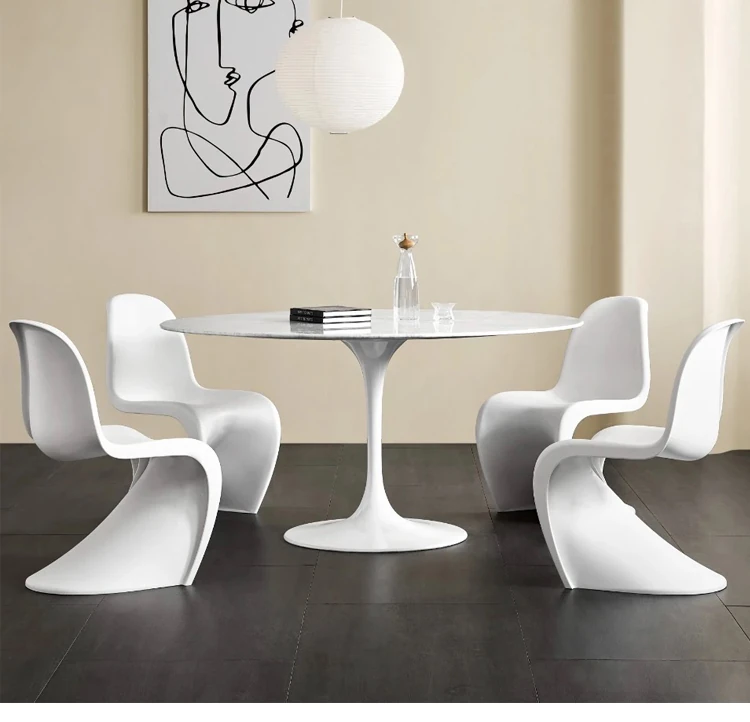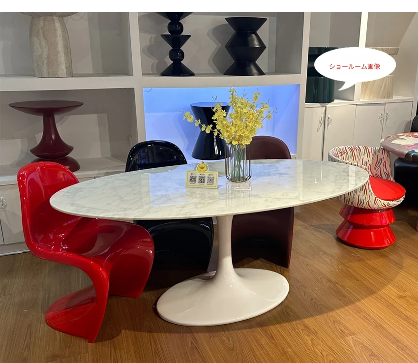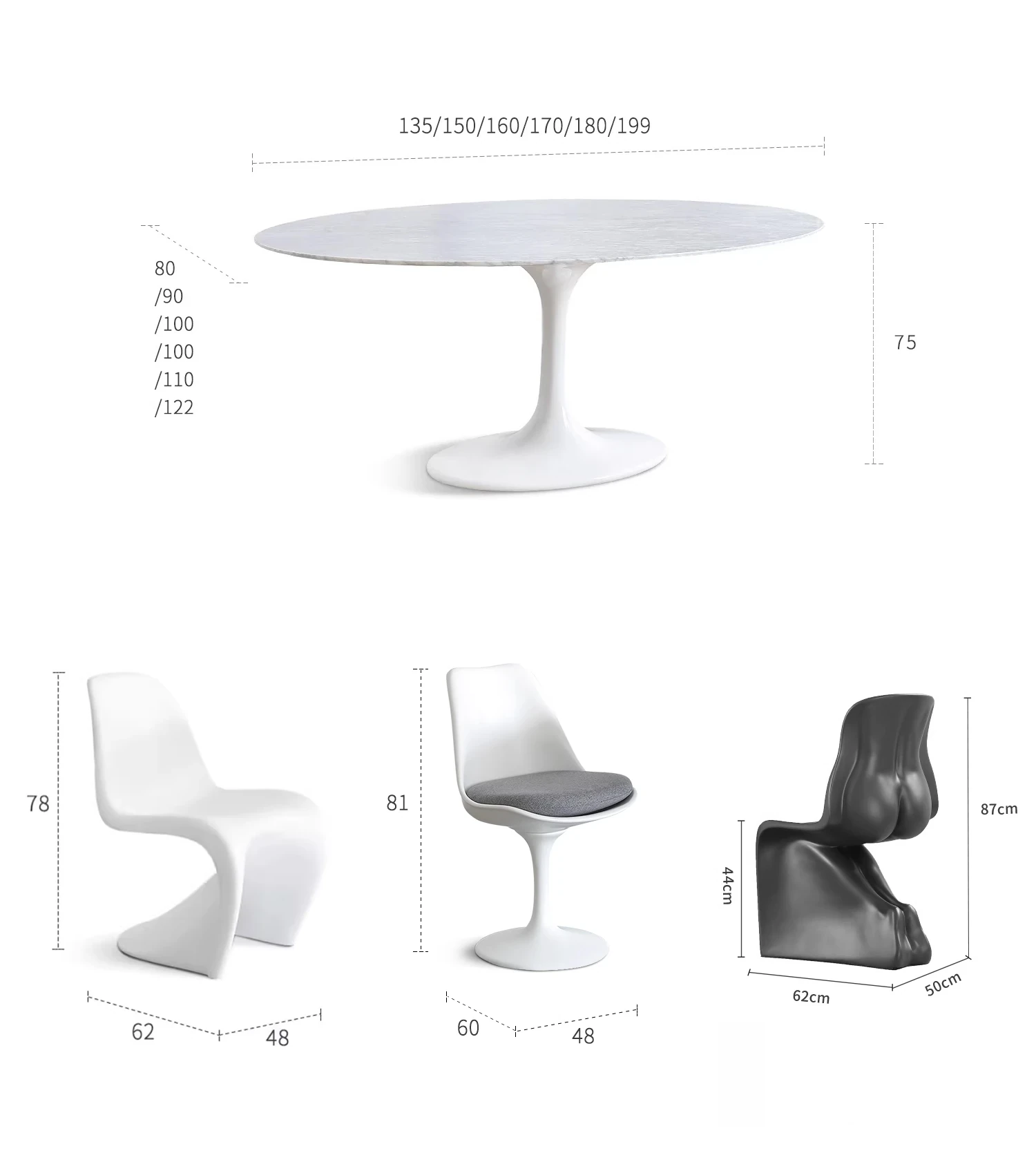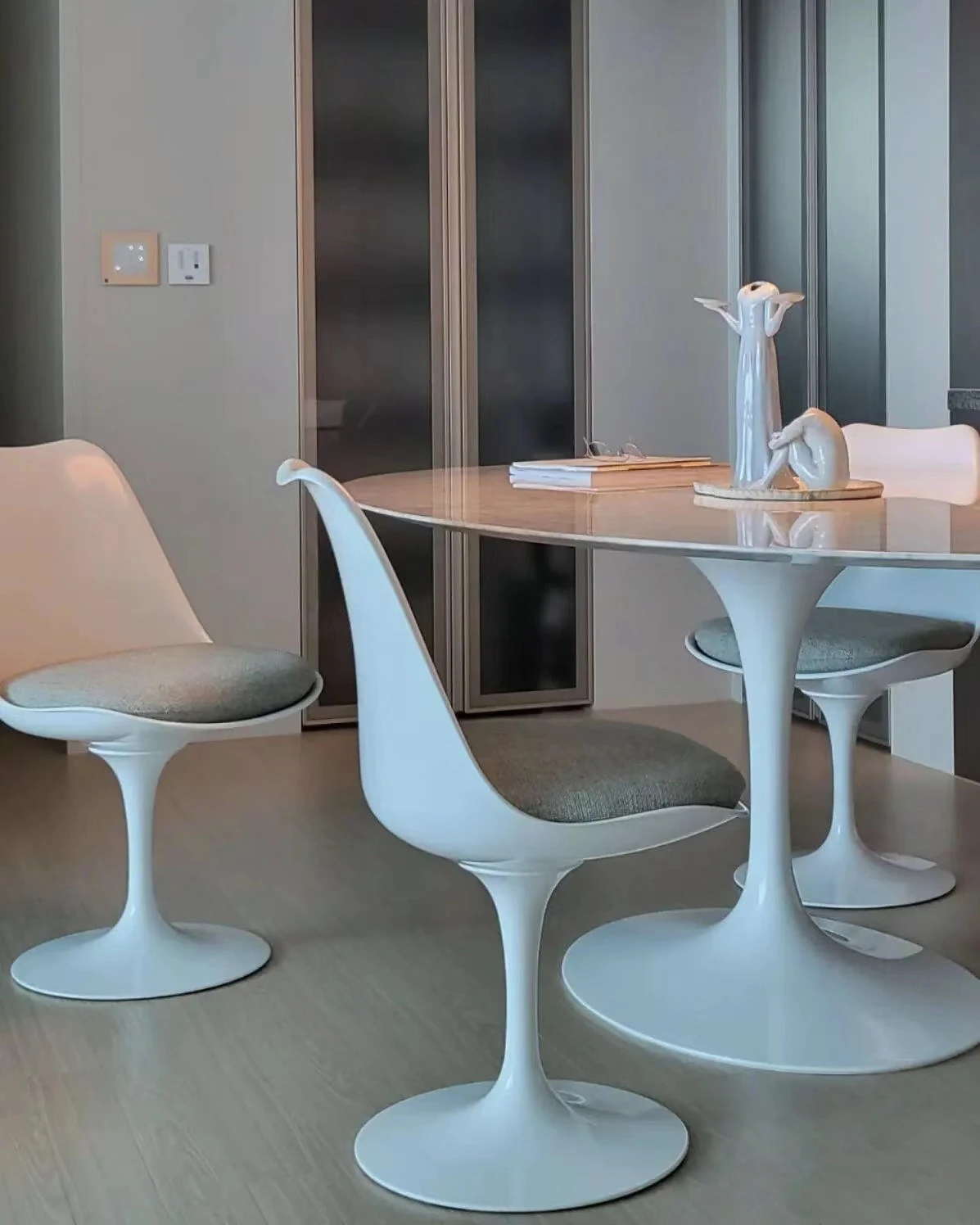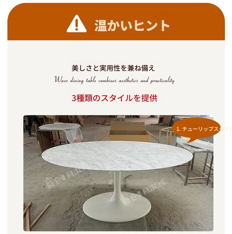 2025年新作!フランス風クリーミーなチューリップデザインのダイニングテーブル。小型住宅に最適なラグジュアリーな天然大理石製、丸型テーブルとチェアのセットで、スタイリッシュな食卓を演出します!