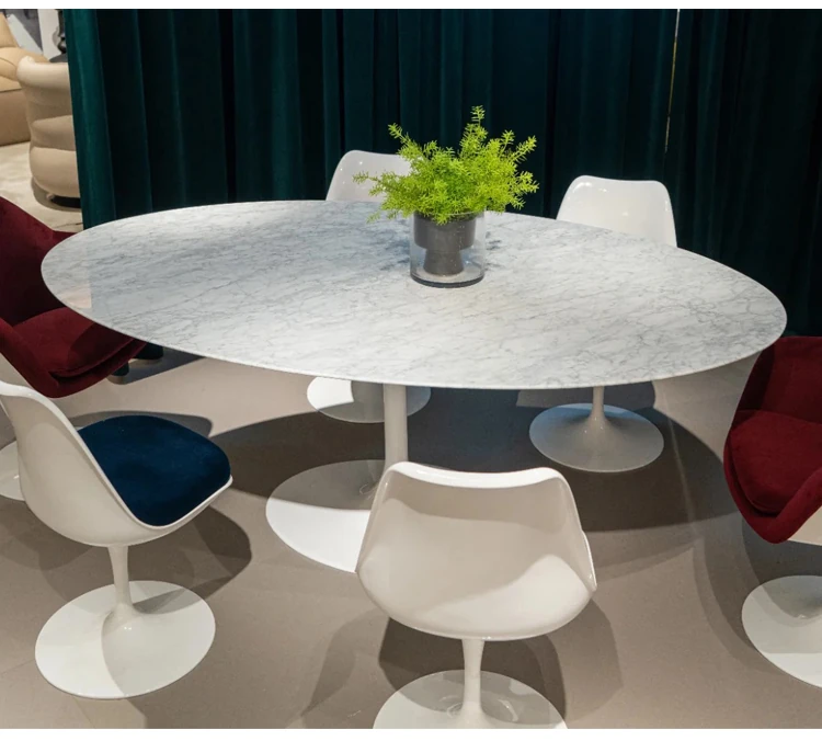 チューリップオーバルテーブル-中花白大理石【1.5メートル】