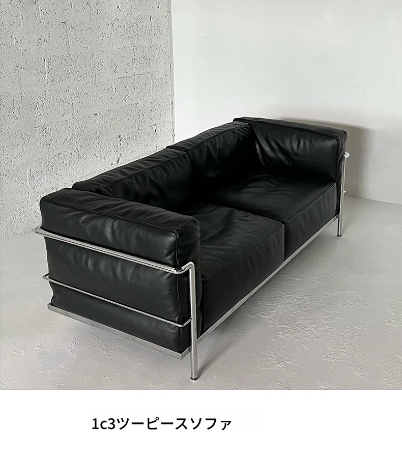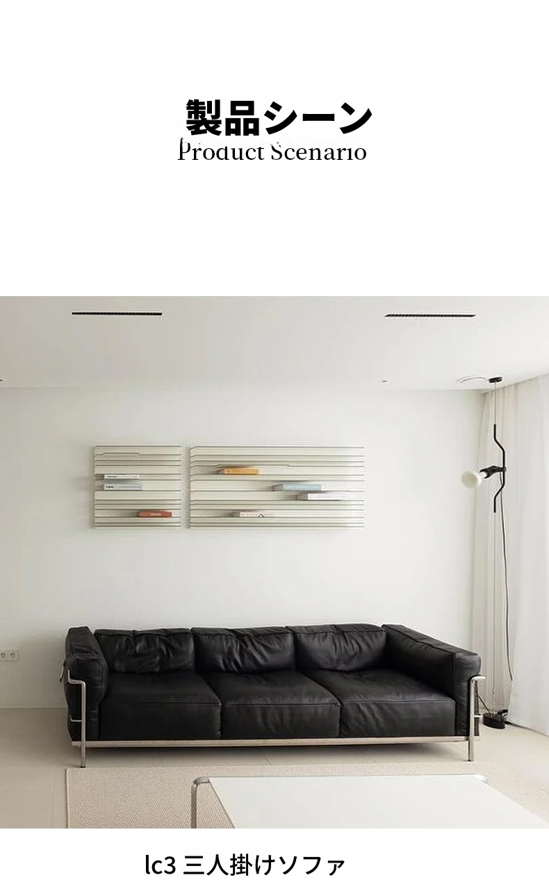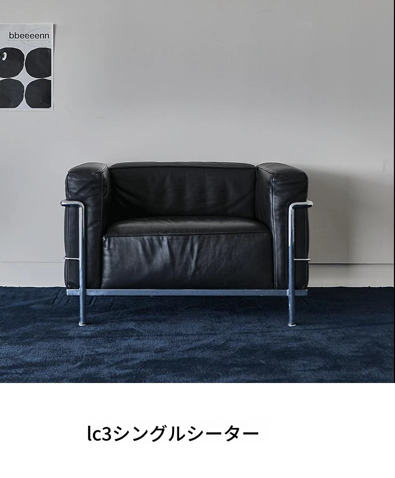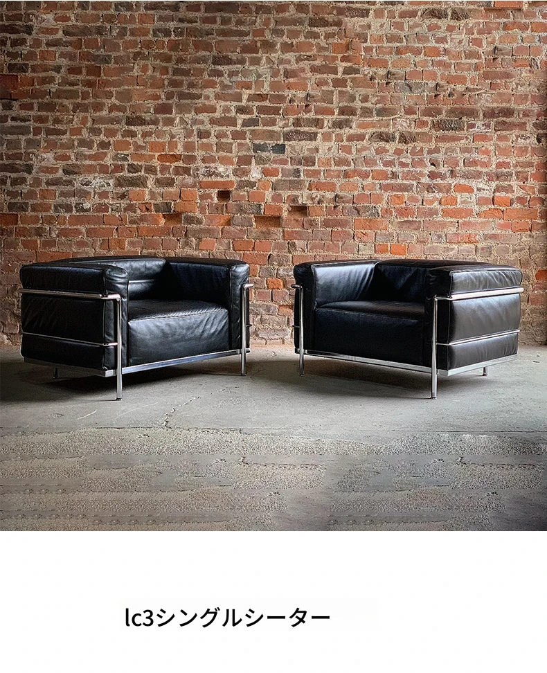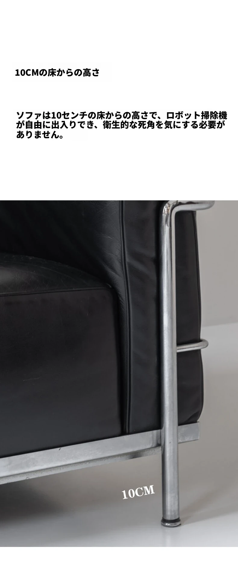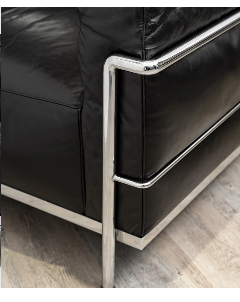 デザイナー中古風ブラックレザーソファ LC3 バウハウス スタイリッシュな高級感 リビングルームにぴったりなコンパクト3人掛けソファ
