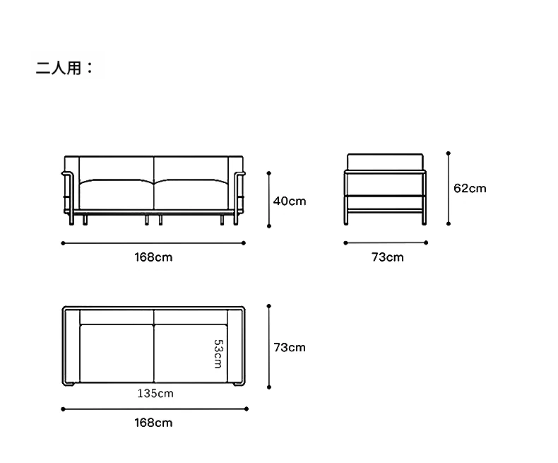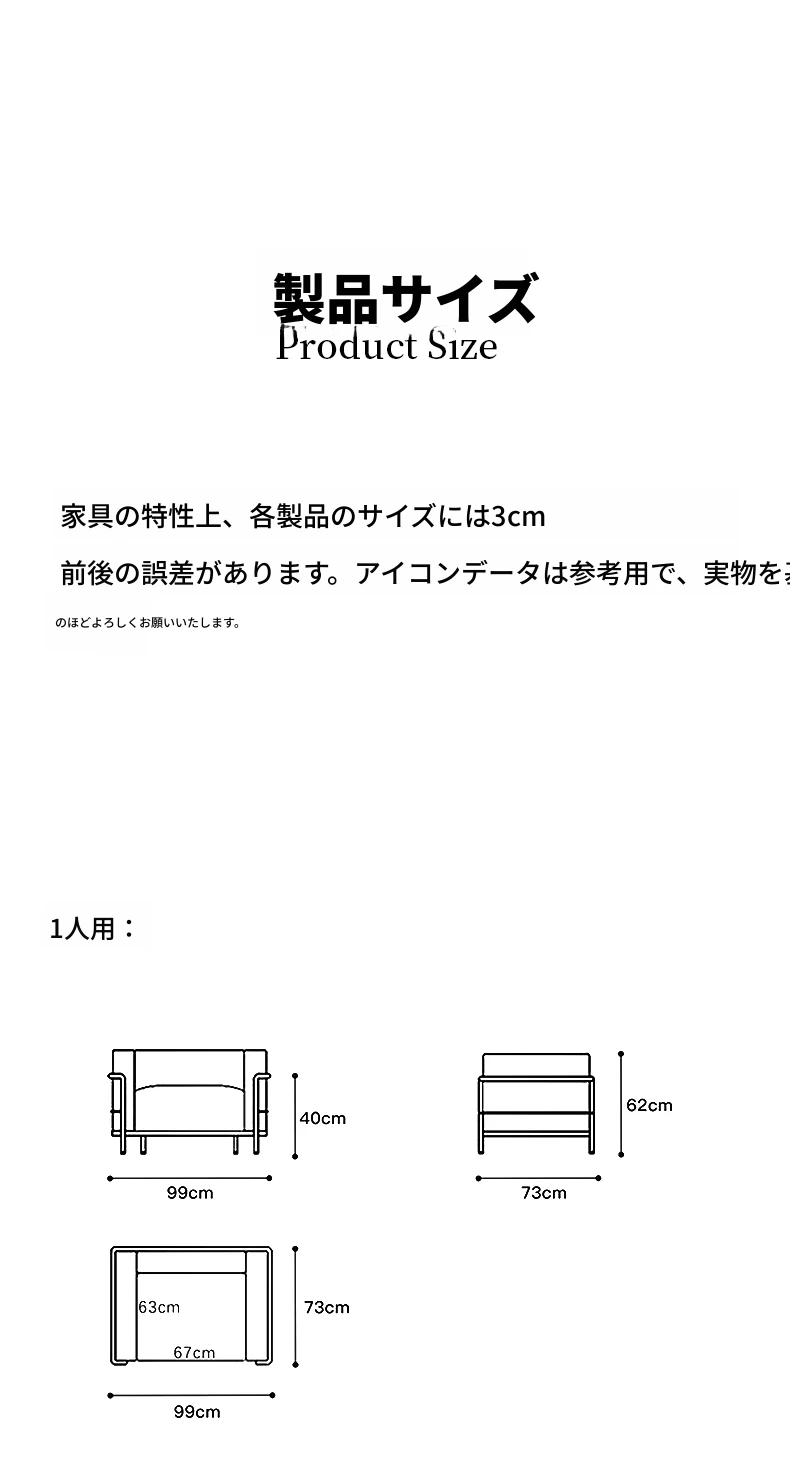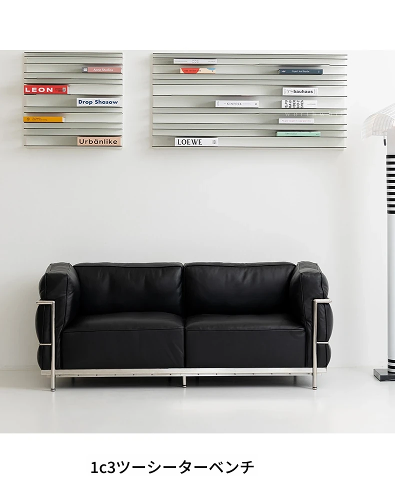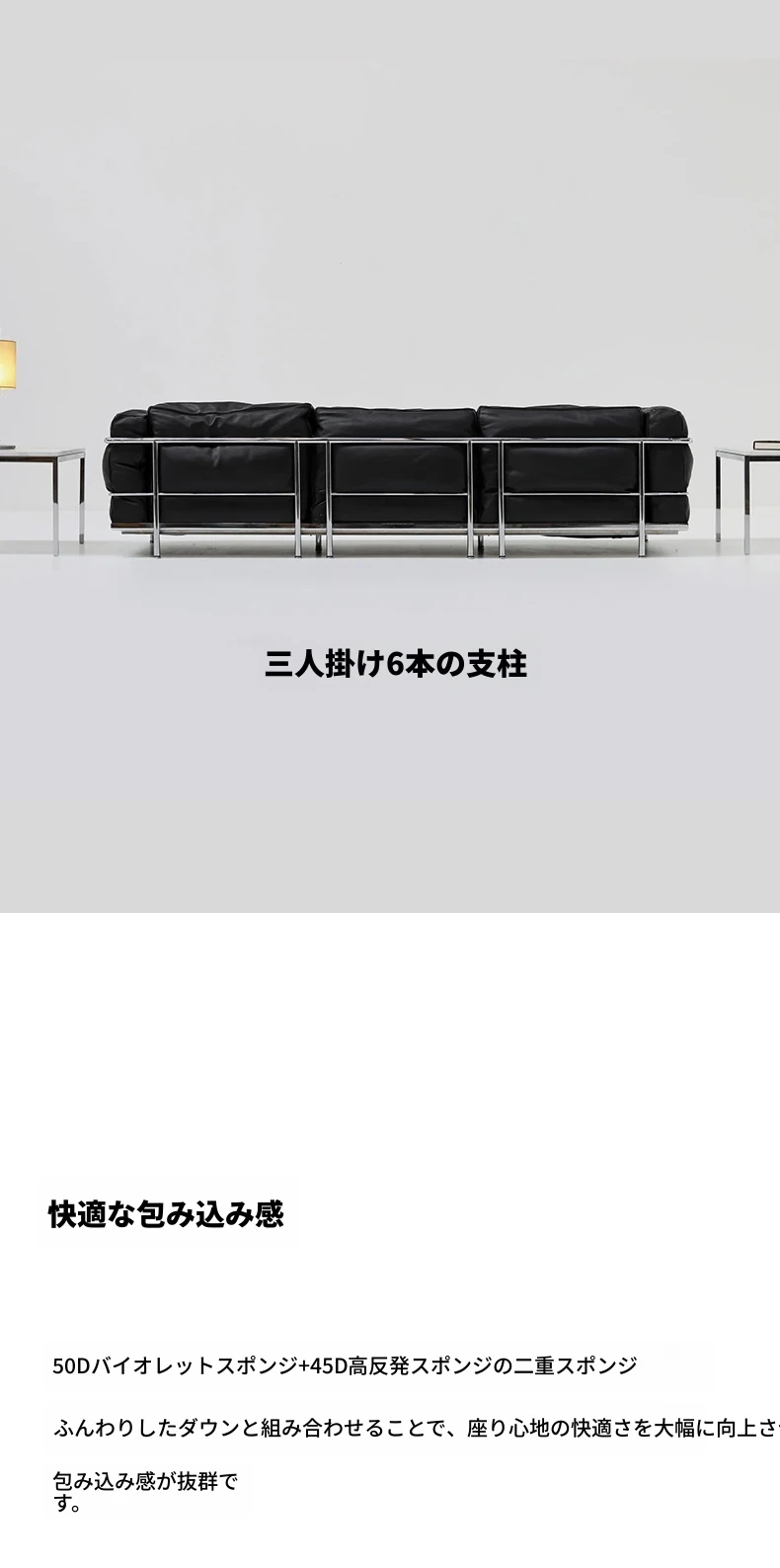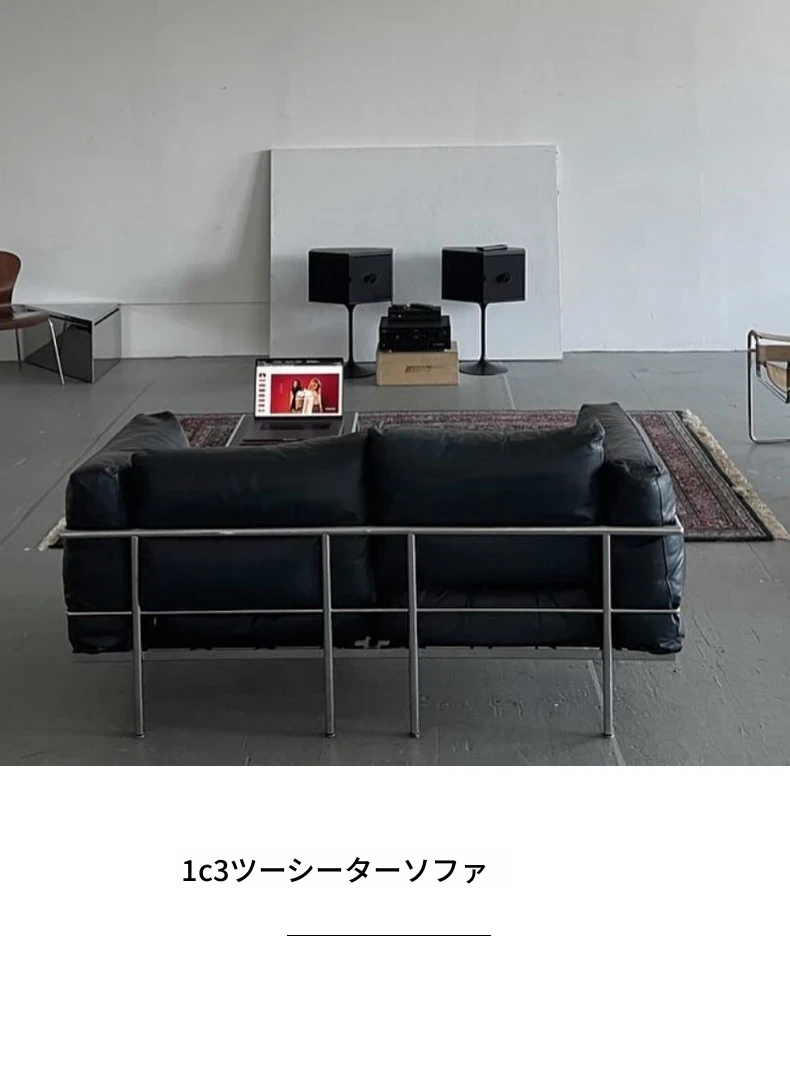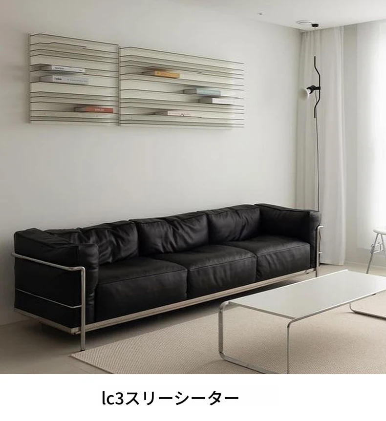 デザイナー中古風ブラックレザーソファ LC3 バウハウス スタイリッシュな高級感 リビングルームにぴったりなコンパクト3人掛けソファ
