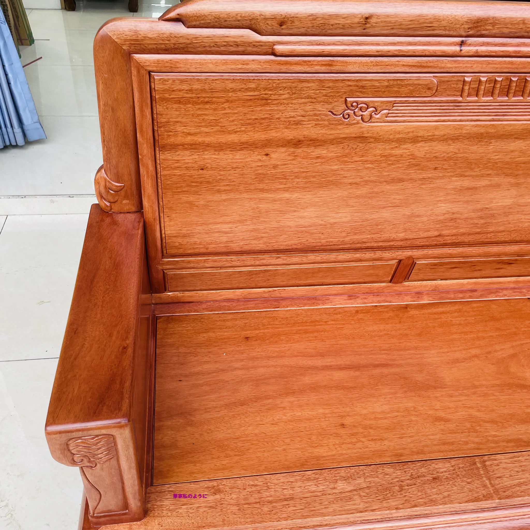 新中式デザインの高級紅木ソファー!天然のインポートパイナップルウッドを使用した3人掛けベンチ。リビングにぴったりの華やかな花梨木の座椅子で、優雅な空間を演出します。