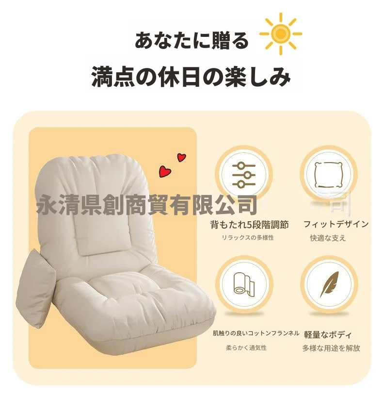 快適なリラックス体験!寝転がれるソファ、背もたれ付きの畳スタイルの一人用ソファ。バルコニーや窓辺での使用にも最適、使い方自由自在な「ズボラ神器」です!