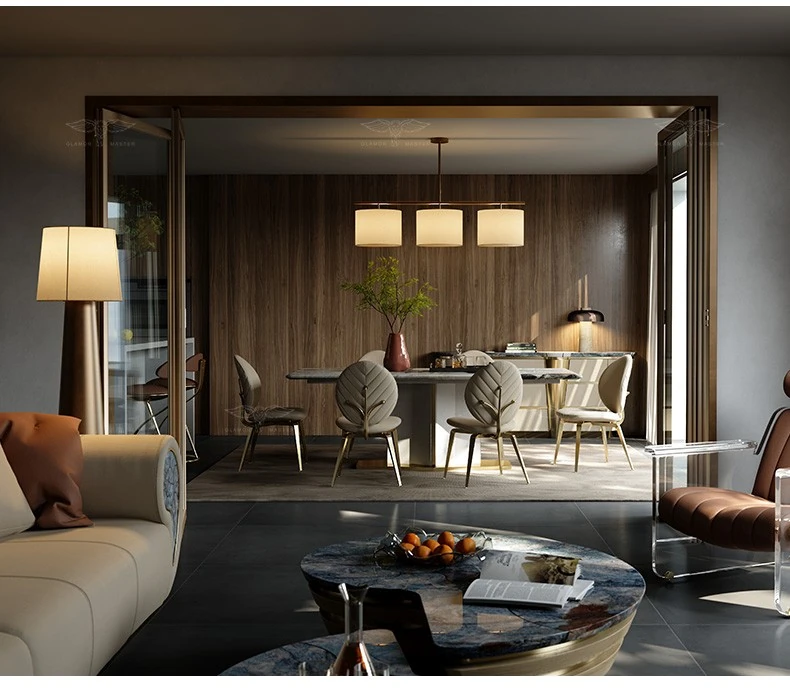 イタリアンミニマリストデザインの豪華ヴィラ向けモダンラグジュアリー天然大理石ロングダイニングテーブルで、洗練された食空間を演出しませんか?