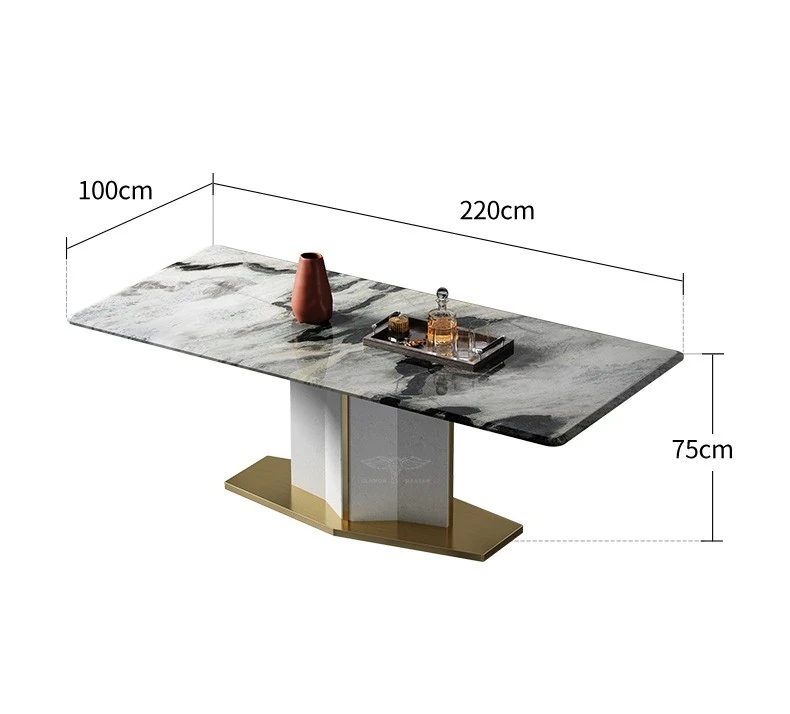 ダイニングテーブル/2.2M/パンダホワイトクリスタル+カリアイスストーン/シャンパンゴールド