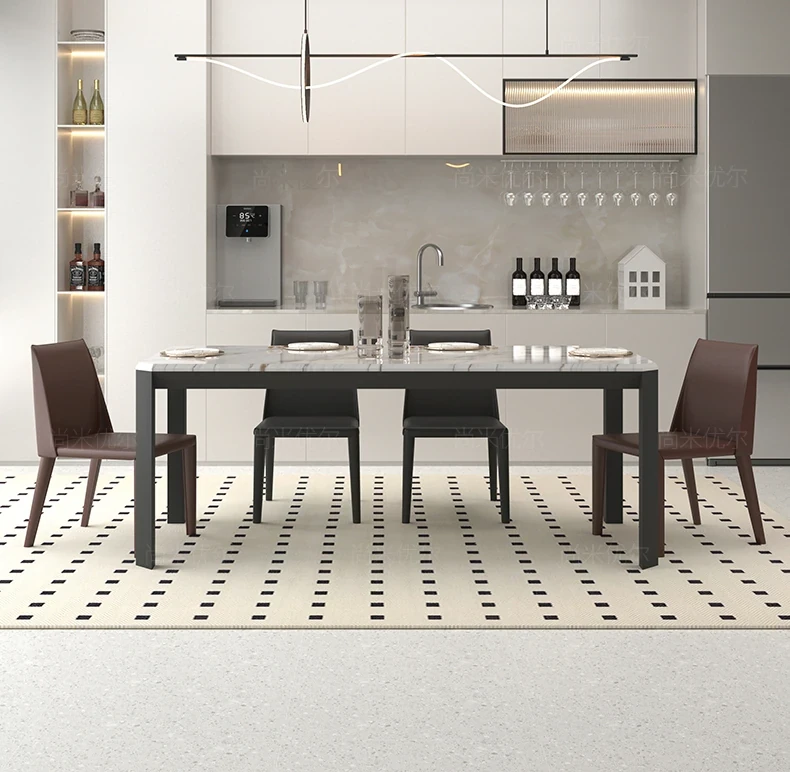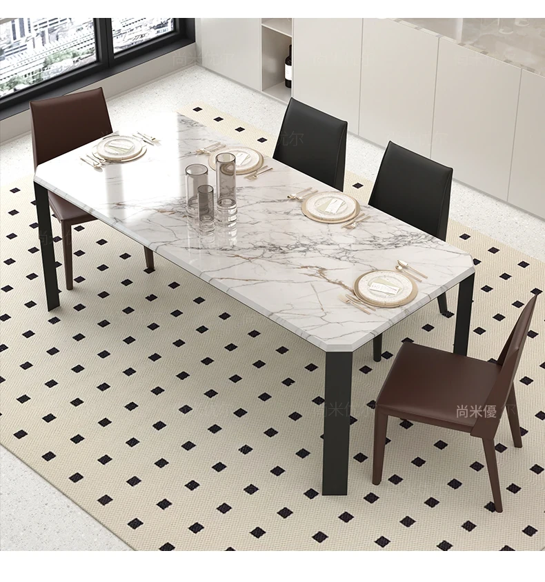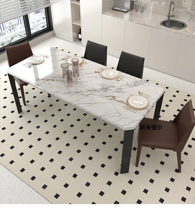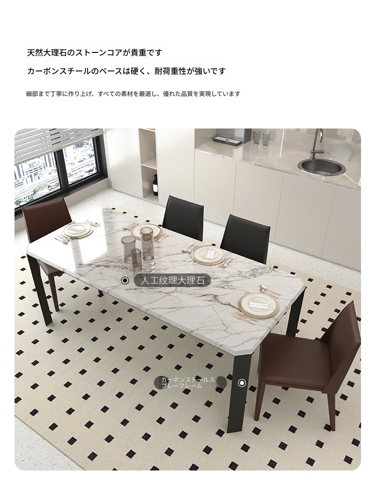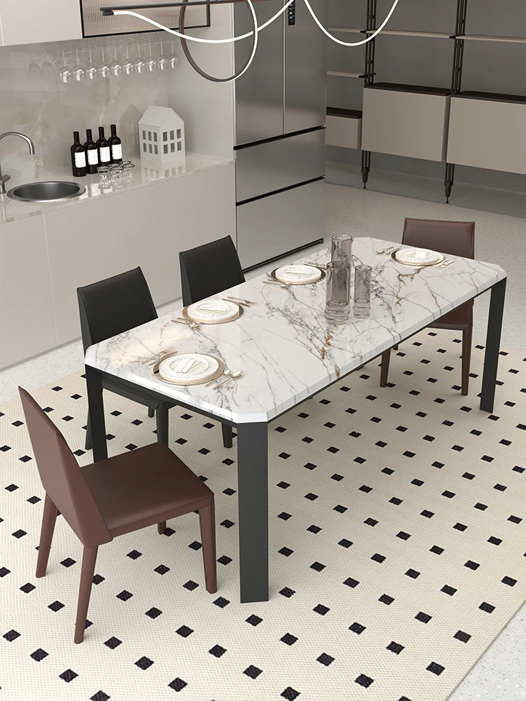 シンプルでモダンな長方形大理石ダイニングテーブル - デザイナーによる小型アパート向け、アートスタイルの食卓椅子セット。おしゃれな空間を演出し、食事のひとときを特別に!