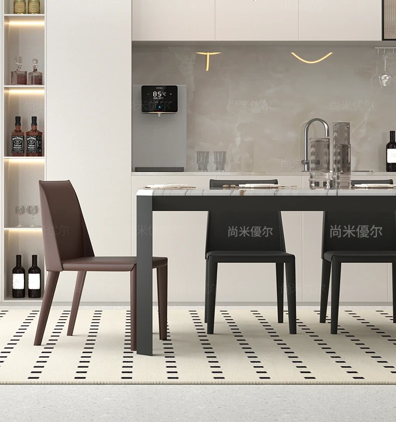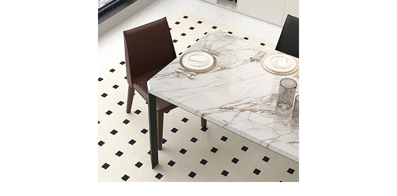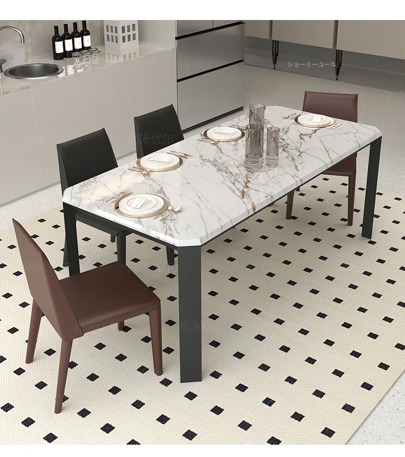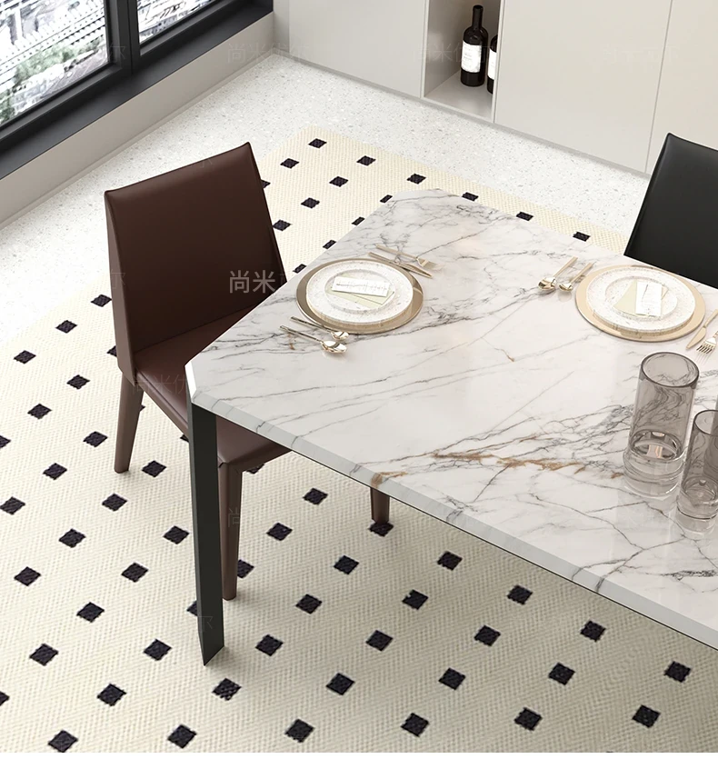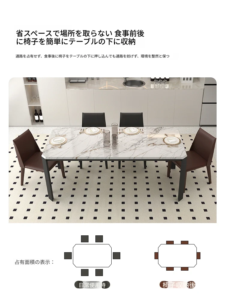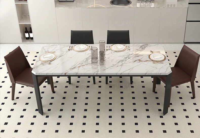 シンプルでモダンな長方形大理石ダイニングテーブル - デザイナーによる小型アパート向け、アートスタイルの食卓椅子セット。おしゃれな空間を演出し、食事のひとときを特別に!