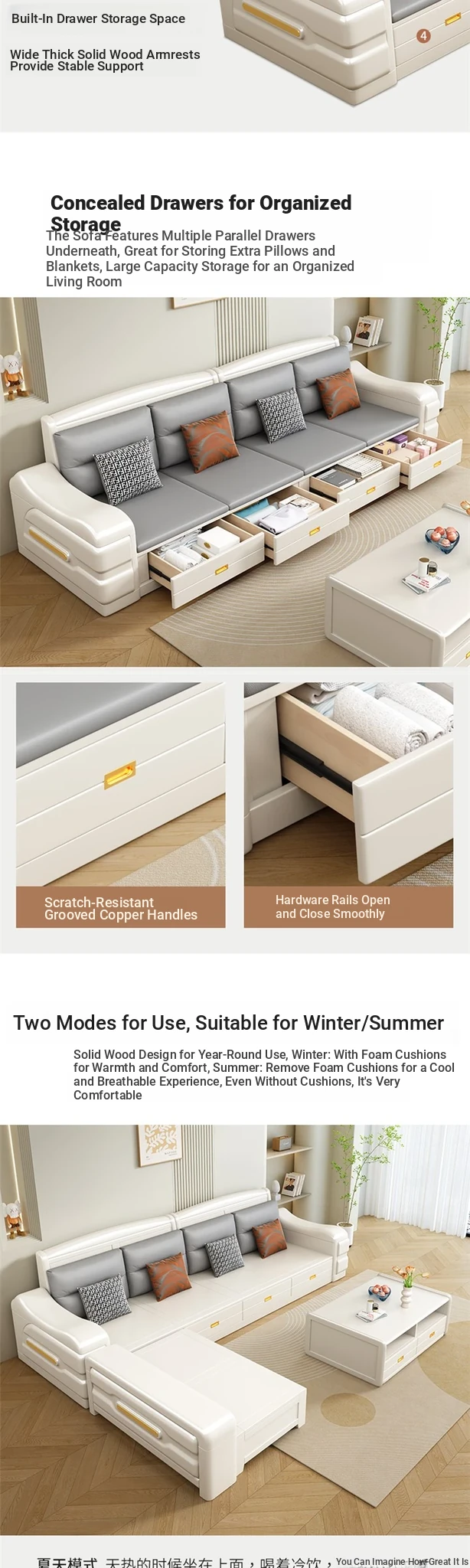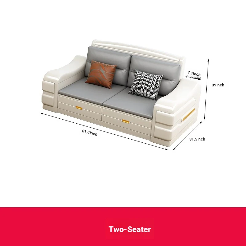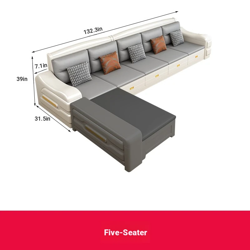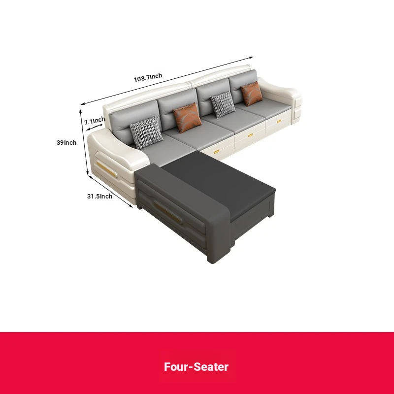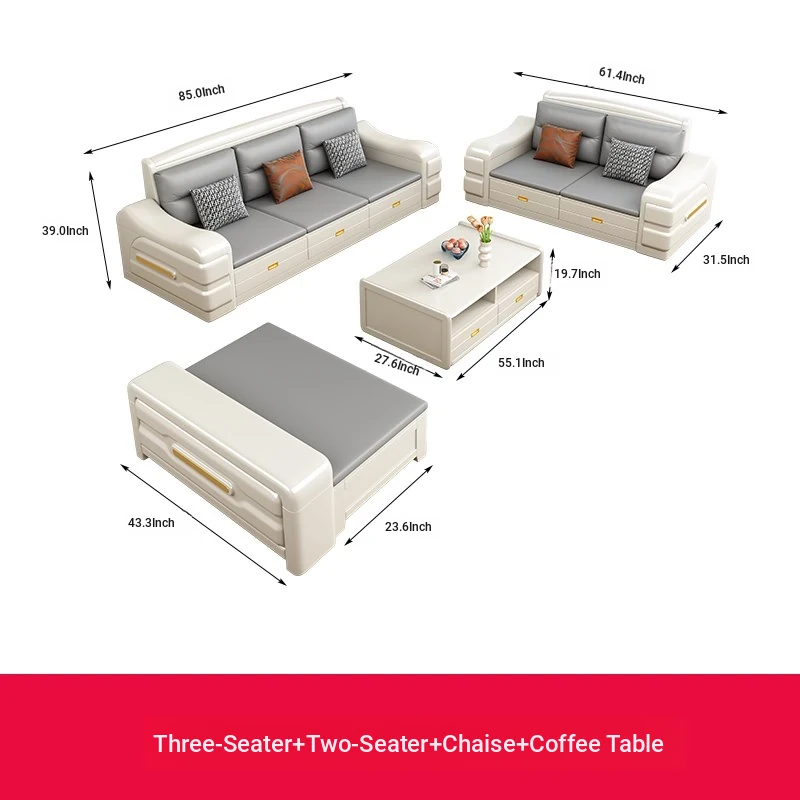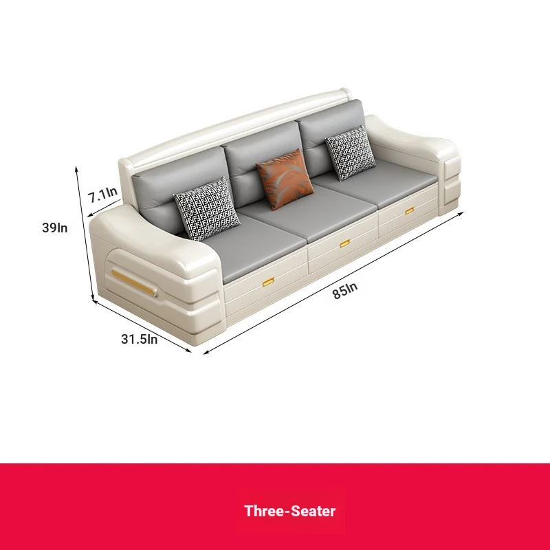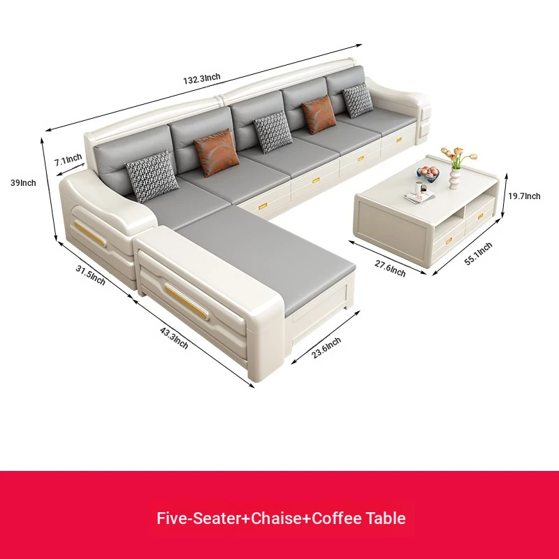 Modern Minimalist Solid Wood Sofa with Fabric Upholstery - White Living Room Corner Chaise Lounge with Drawers for Storage, Perfect for Winter and Summer Use