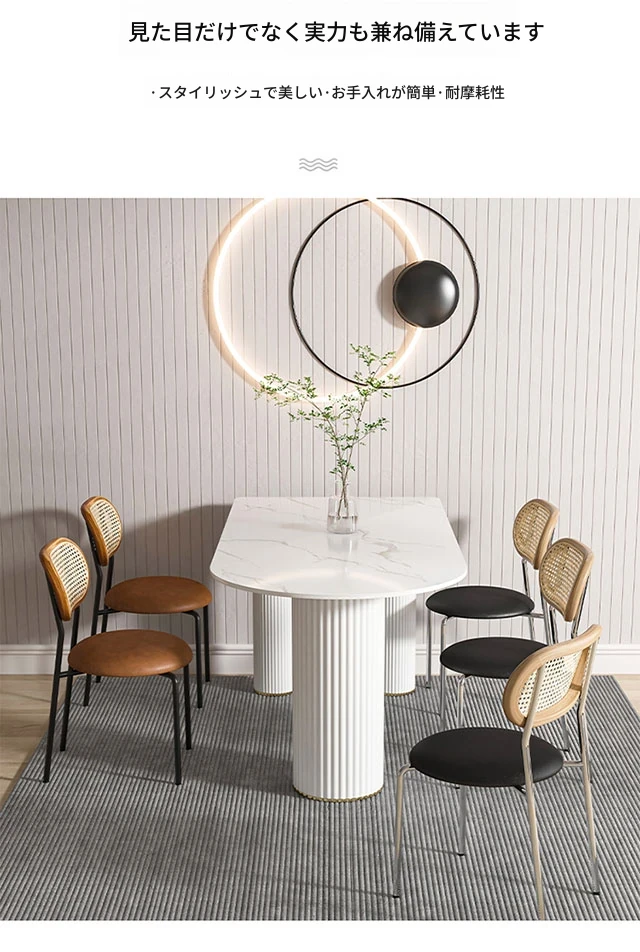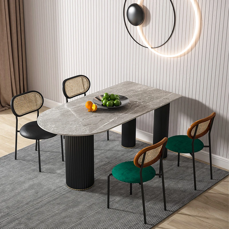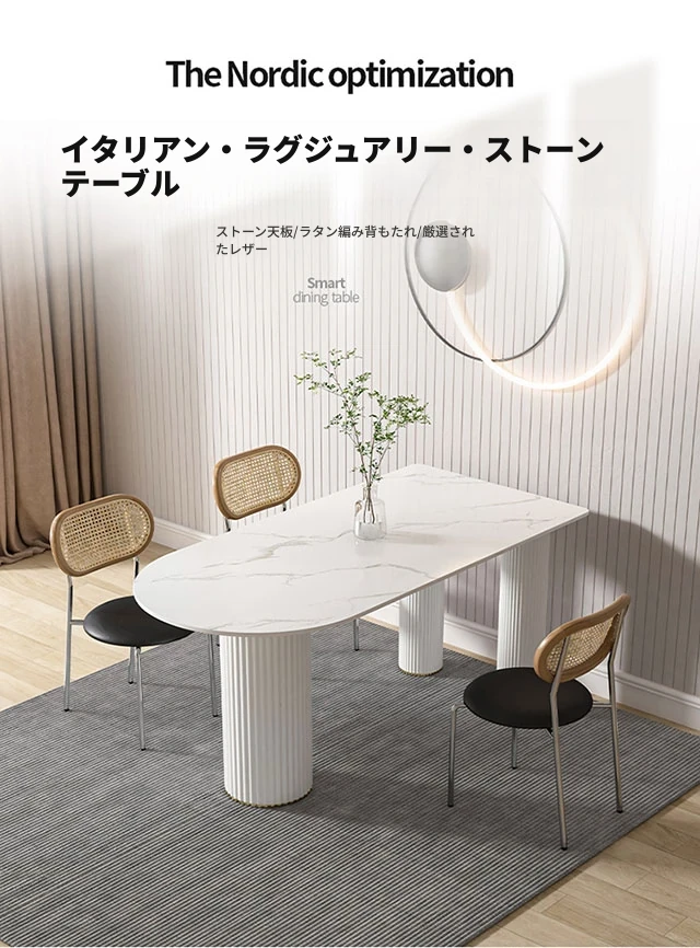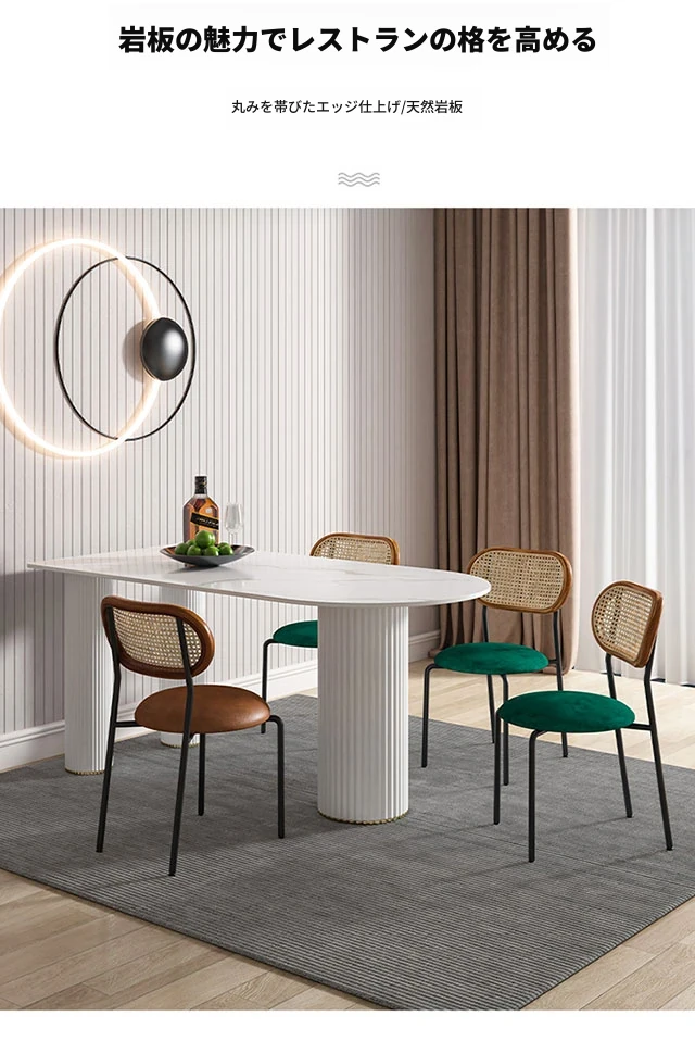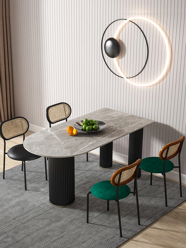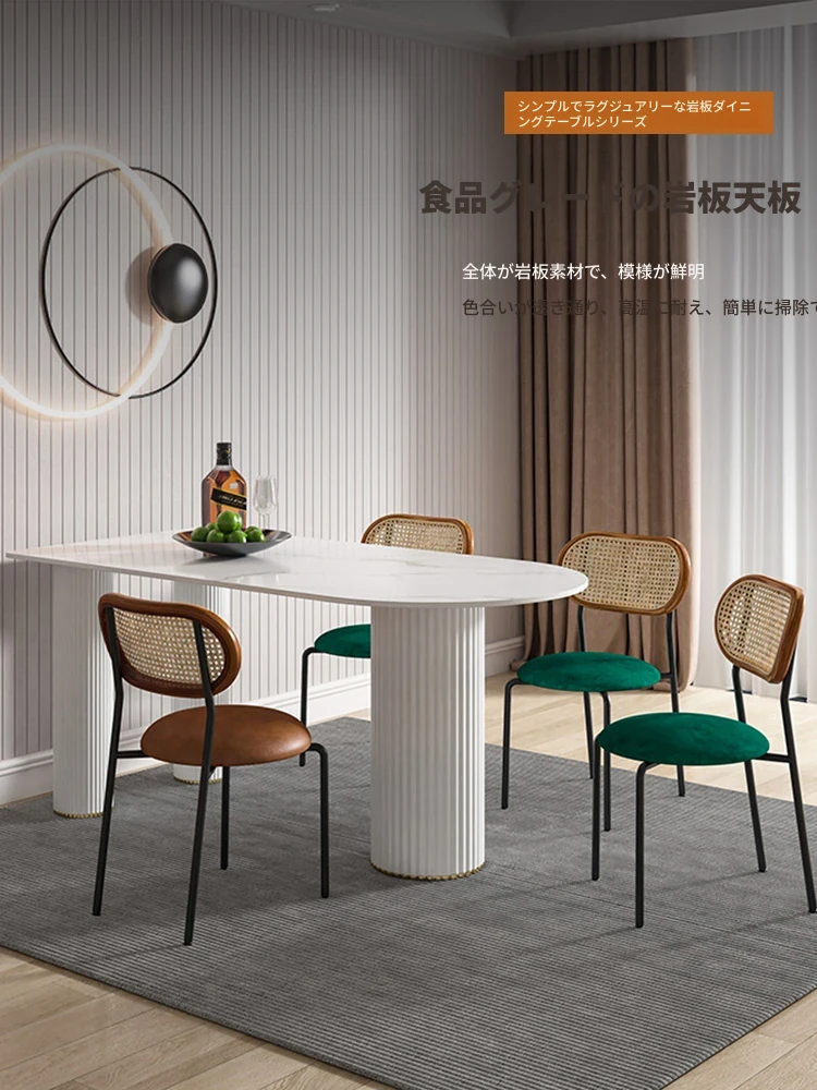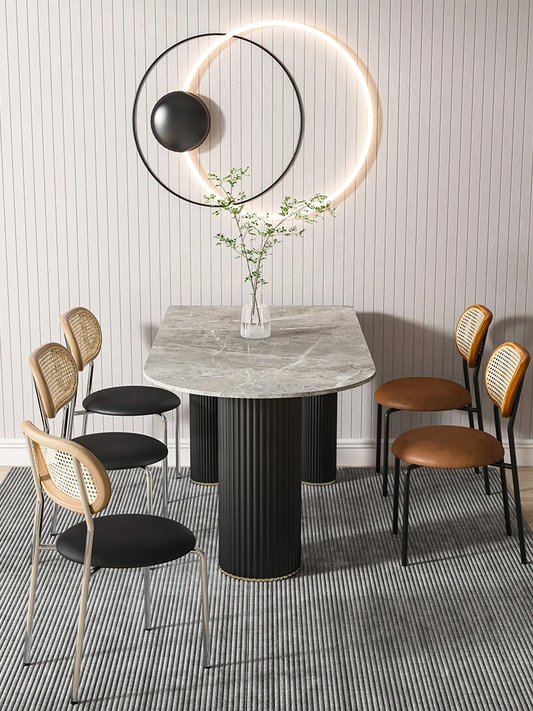 北欧風のモダンでシンプルな軽奢ダイニングテーブル - 長方形の中島テーブル、家族での食事にぴったりの大理石製テーブル!スタイリッシュで洗練された空間を演出します。