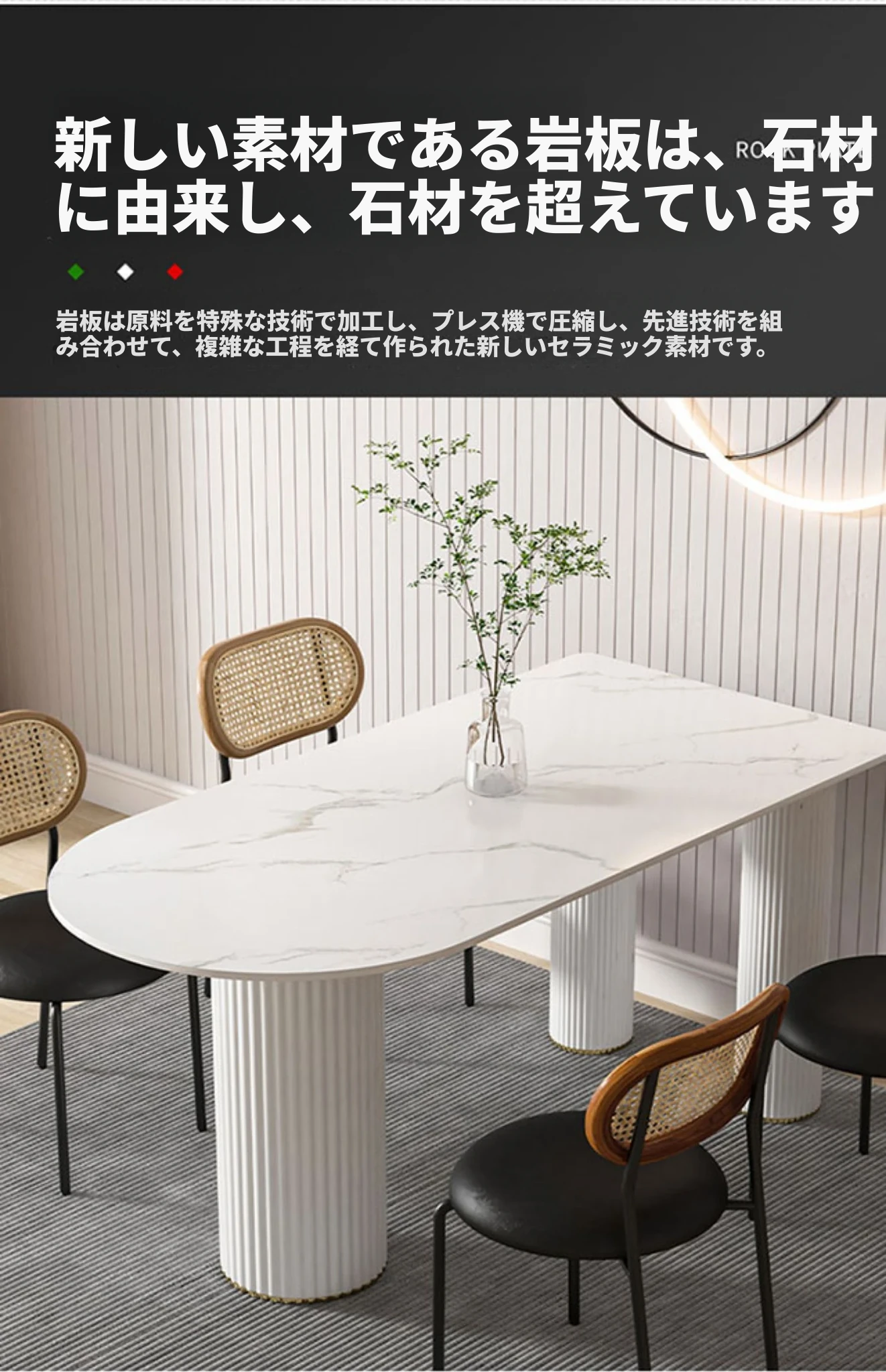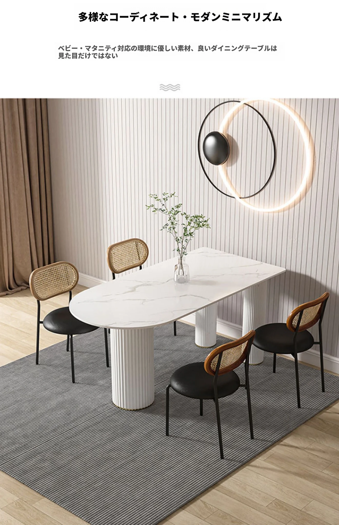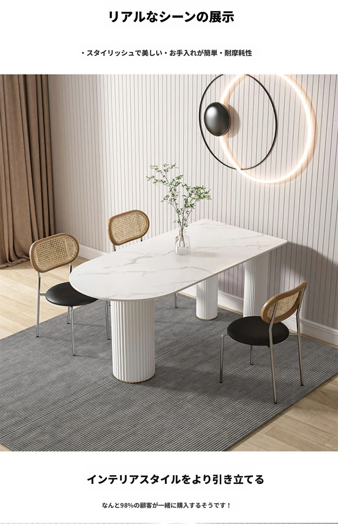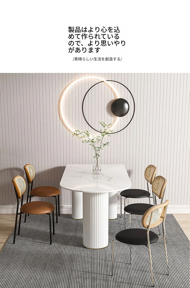 北欧風のモダンでシンプルな軽奢ダイニングテーブル - 長方形の中島テーブル、家族での食事にぴったりの大理石製テーブル!スタイリッシュで洗練された空間を演出します。