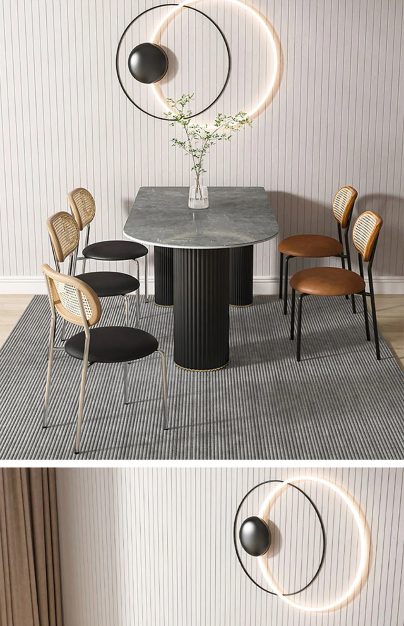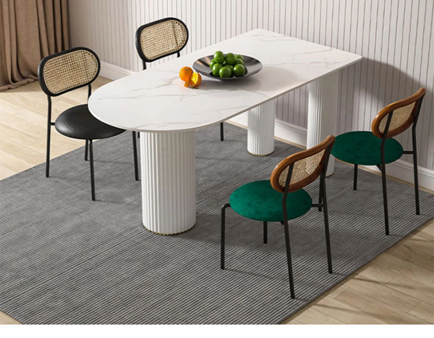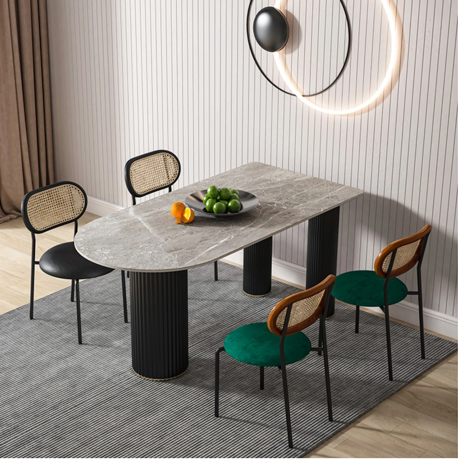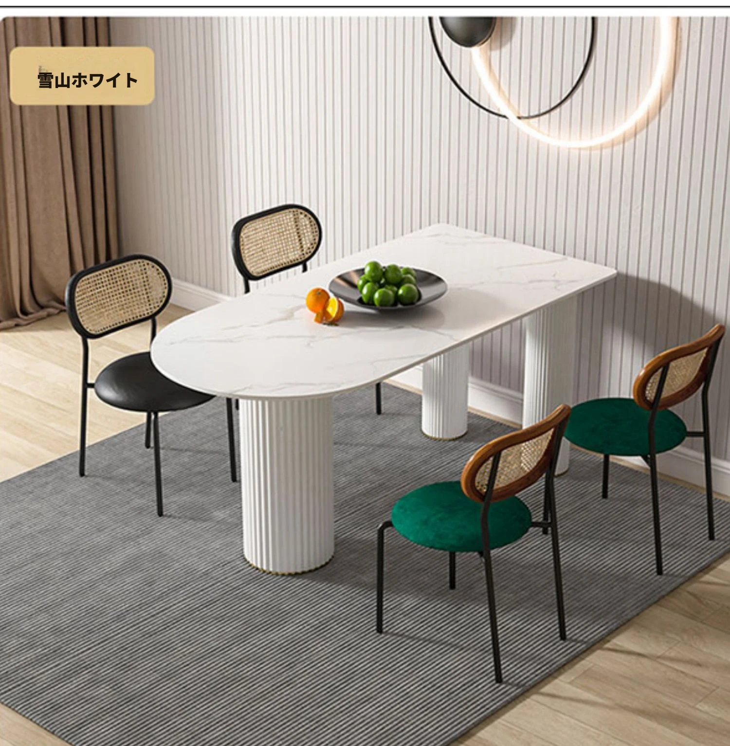 北欧風のモダンでシンプルな軽奢ダイニングテーブル - 長方形の中島テーブル、家族での食事にぴったりの大理石製テーブル!スタイリッシュで洗練された空間を演出します。