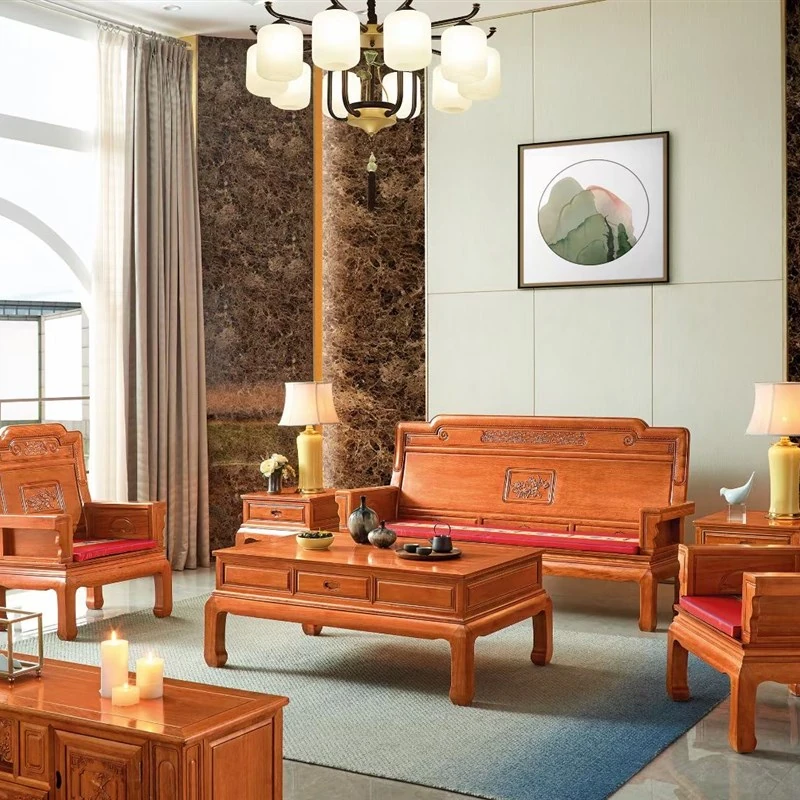 全実木製の金華梨のソファー、紅木家具、パイナップルウッドのリビングルーム用ミニマル中華風アンティーク彫刻ソファー - 高級感あふれるデザインで、おしゃれな空間を演出!