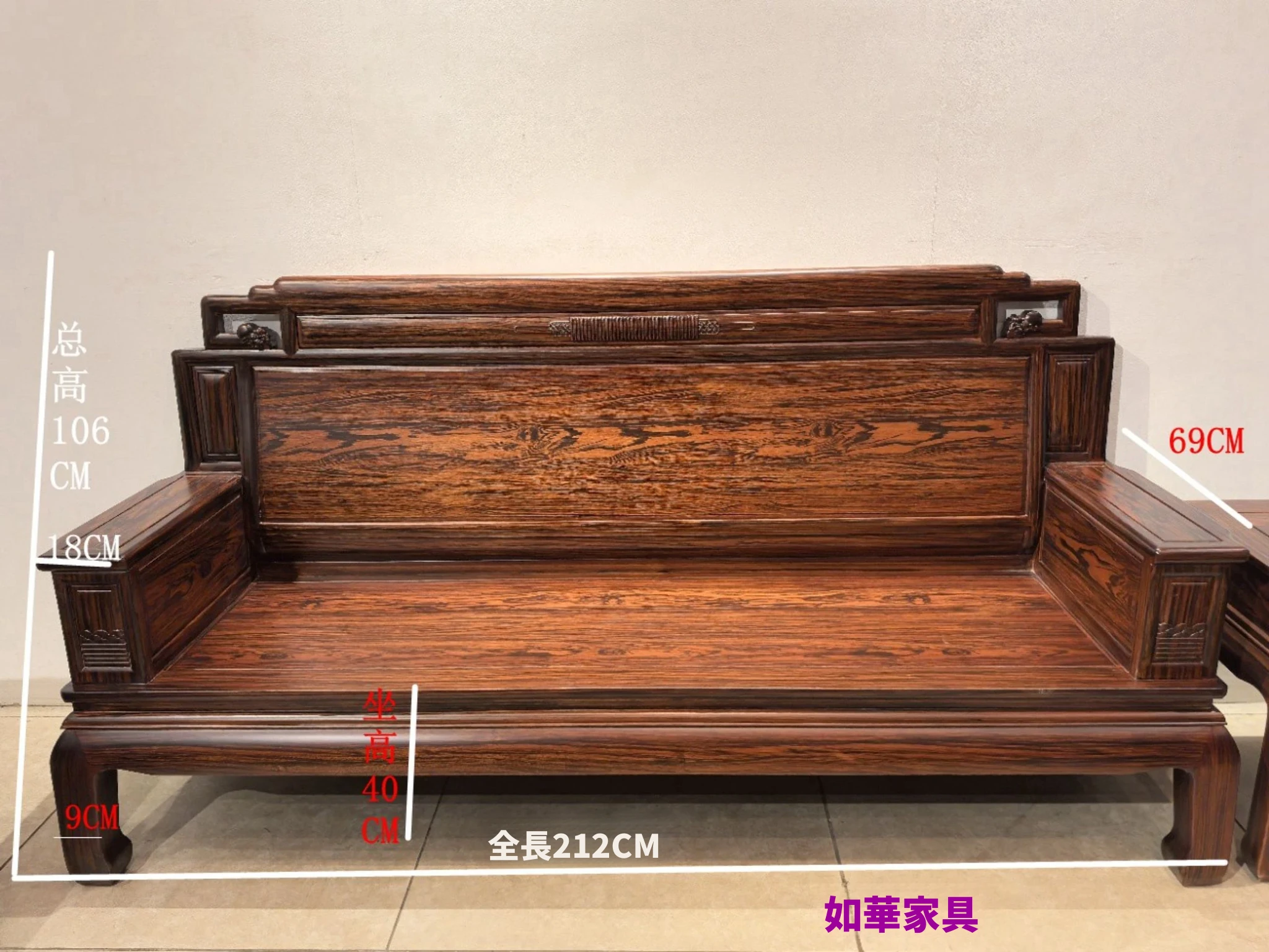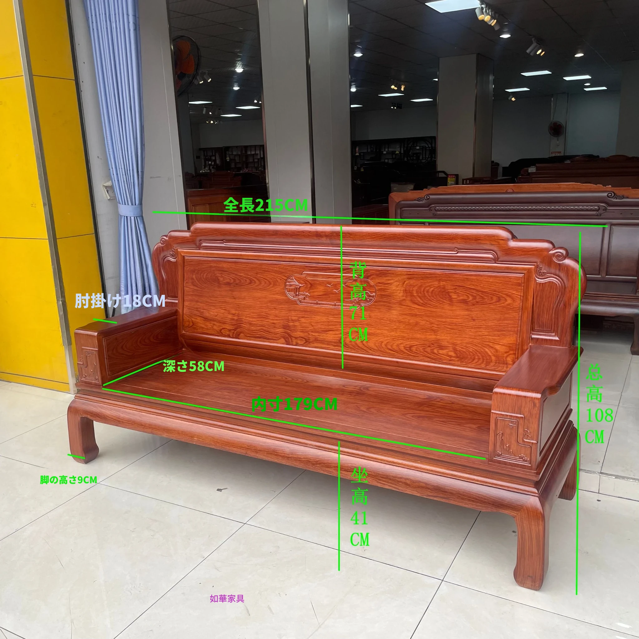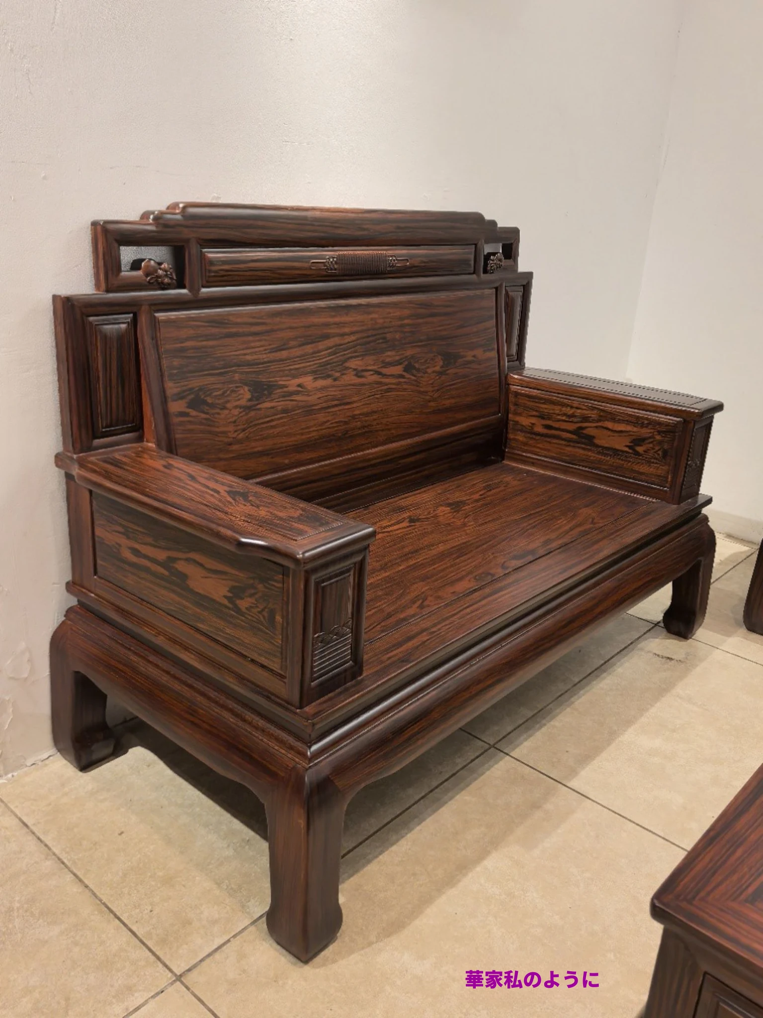 高級紅木ソファー!実木製の3人掛けパイナップルウッド長椅子、北米色の北雲ソファ。花梨木を使用した直販品、贅沢な空間を演出します!