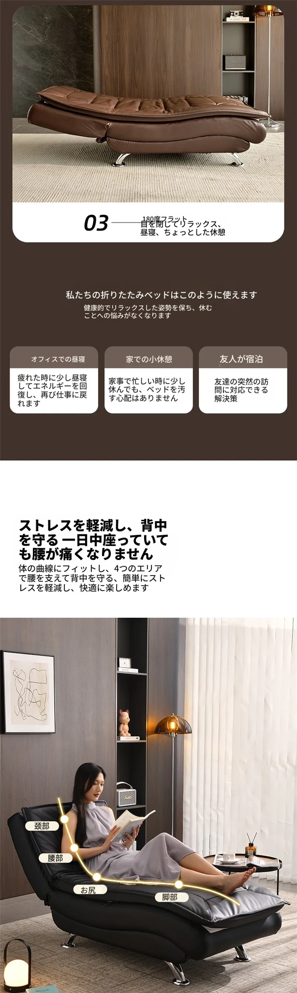 多機能リクライニングチェア|家用・小型S型・高品質レザー製|リビングやバルコニーに最適|折りたたみ可能でお昼寝やリラックスにぴったりな一人用ソファ!快適なひとときをお楽しみください。