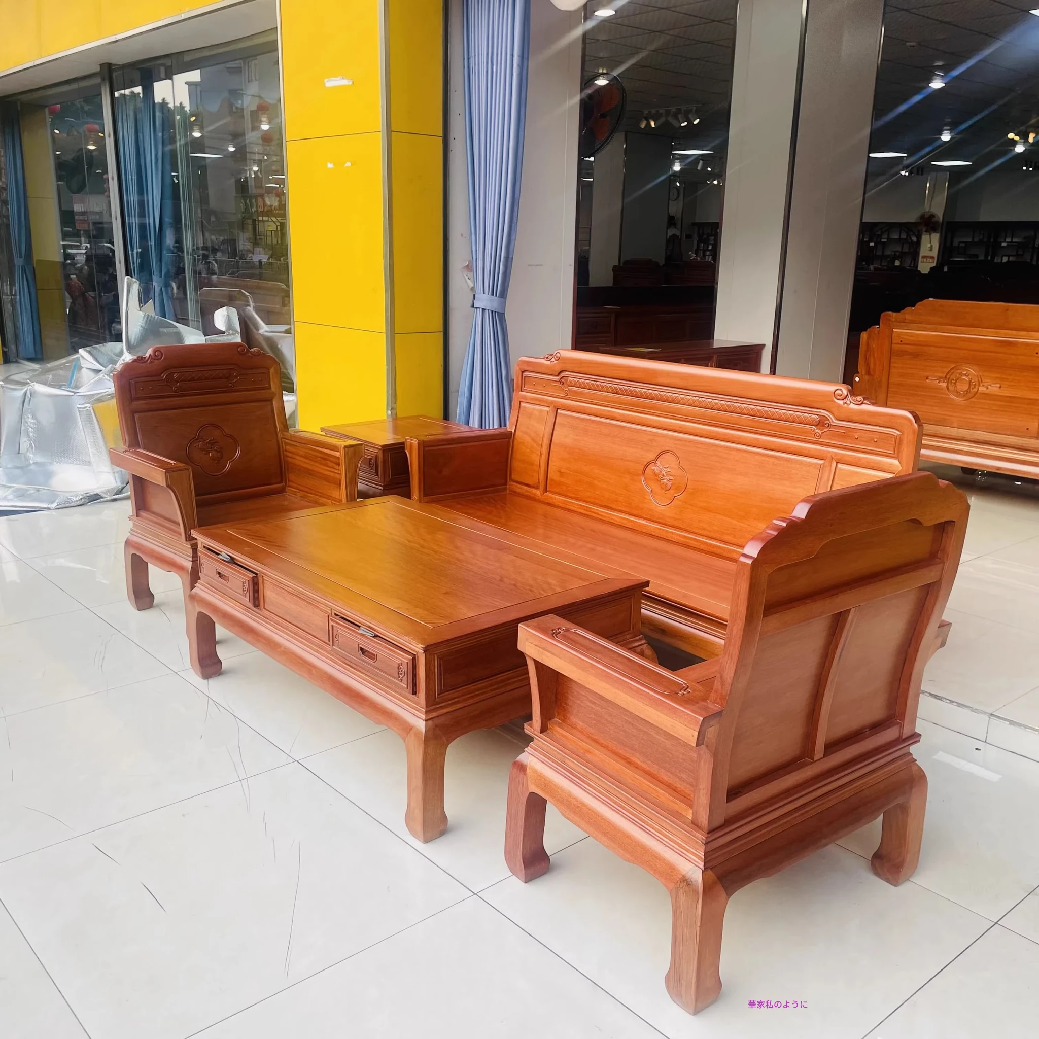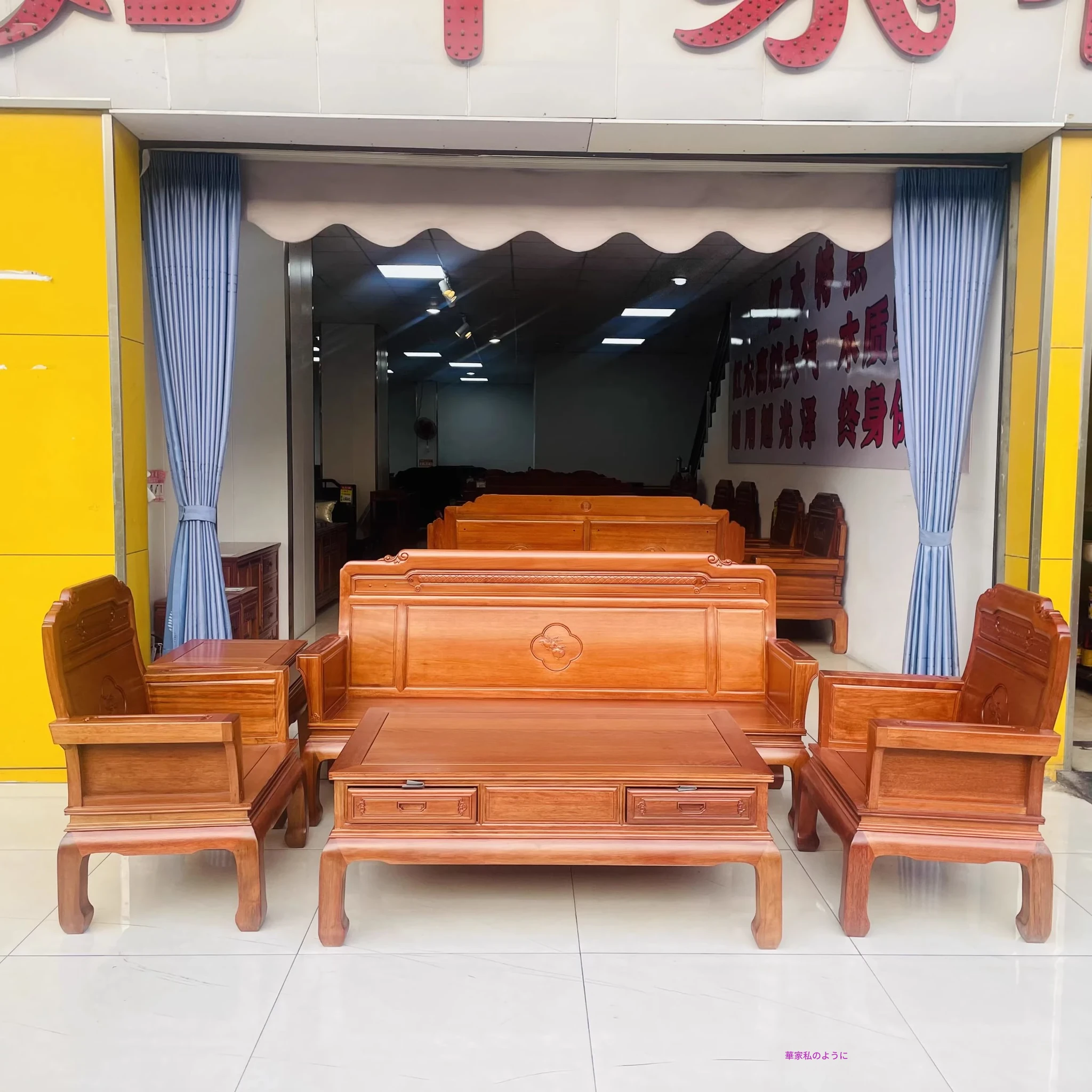 高級紅木ソファ・パイナップルウッド使用のエレガントなリビング家具、レトロなザクロデザインの新古典ソファを工場直販!おしゃれな空間を演出するための最高の選択!