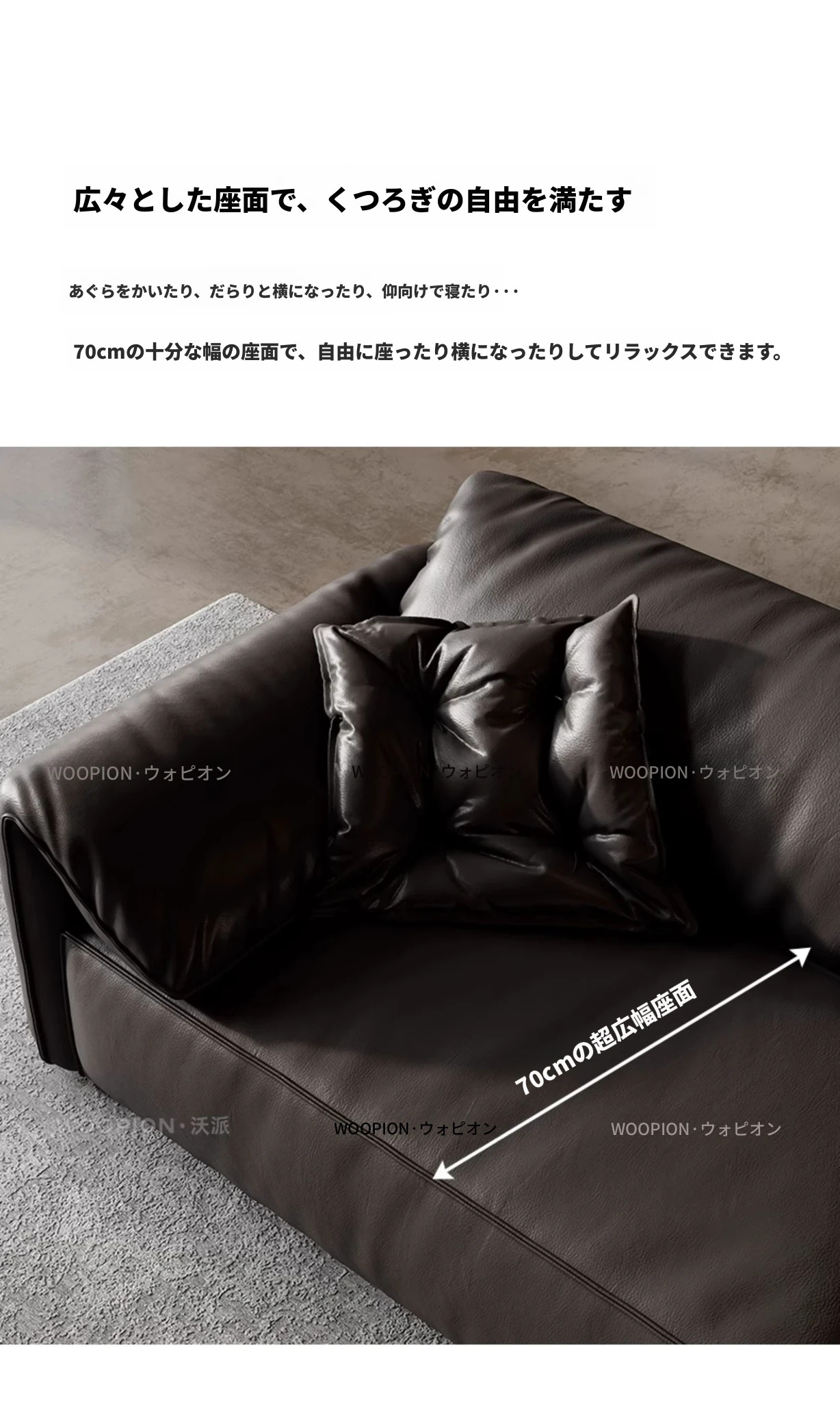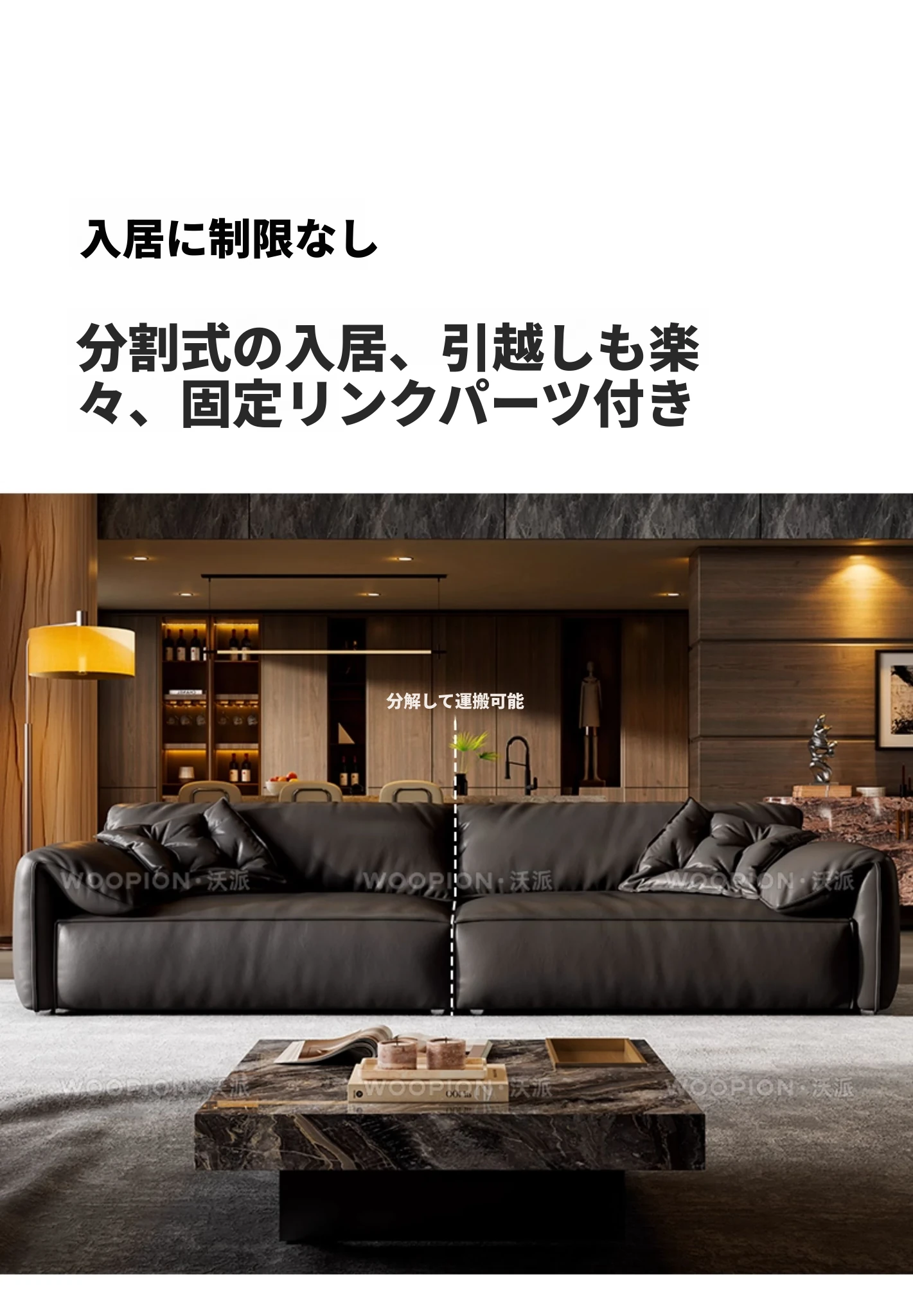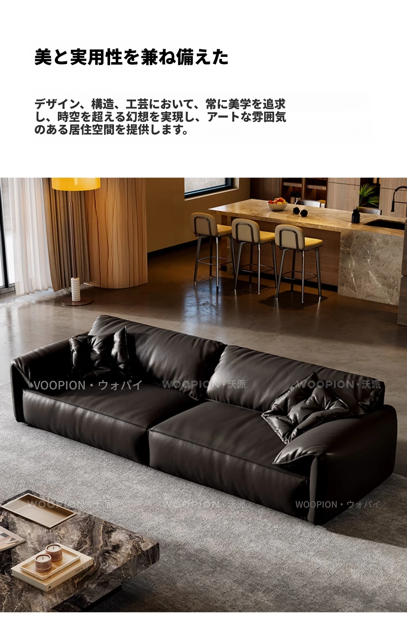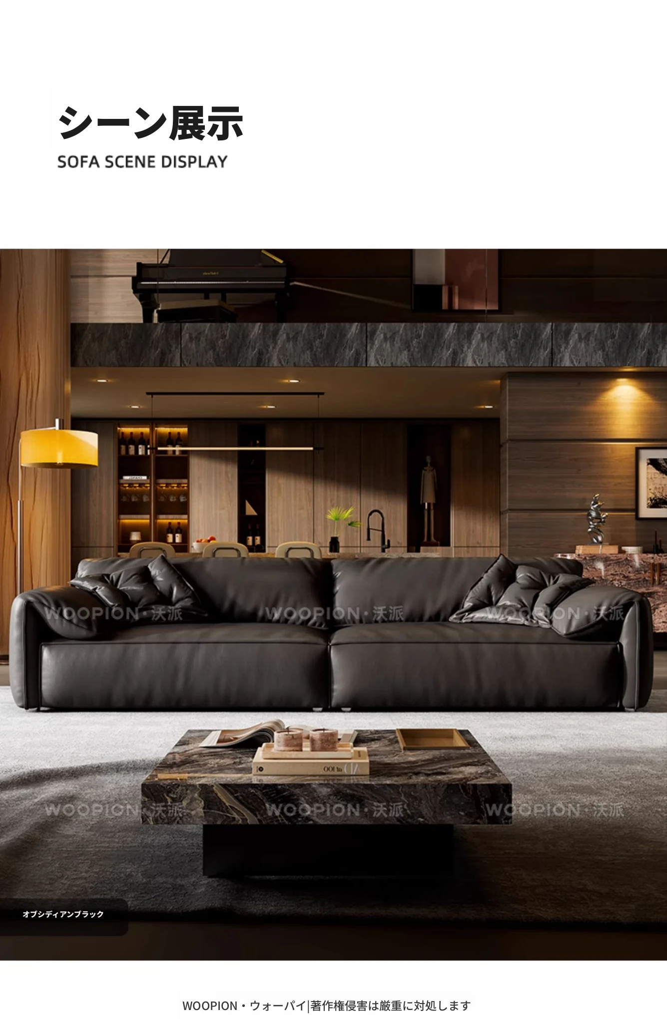 ウォパイ エレファントイヤー 本革ソファ リビング用 イタリアンミニマルデザイン デザイナーズモデル 全青牛革 ブラック仕上げ - 贅沢な座り心地と洗練されたスタイルで、あなたの空間を格上げします!
