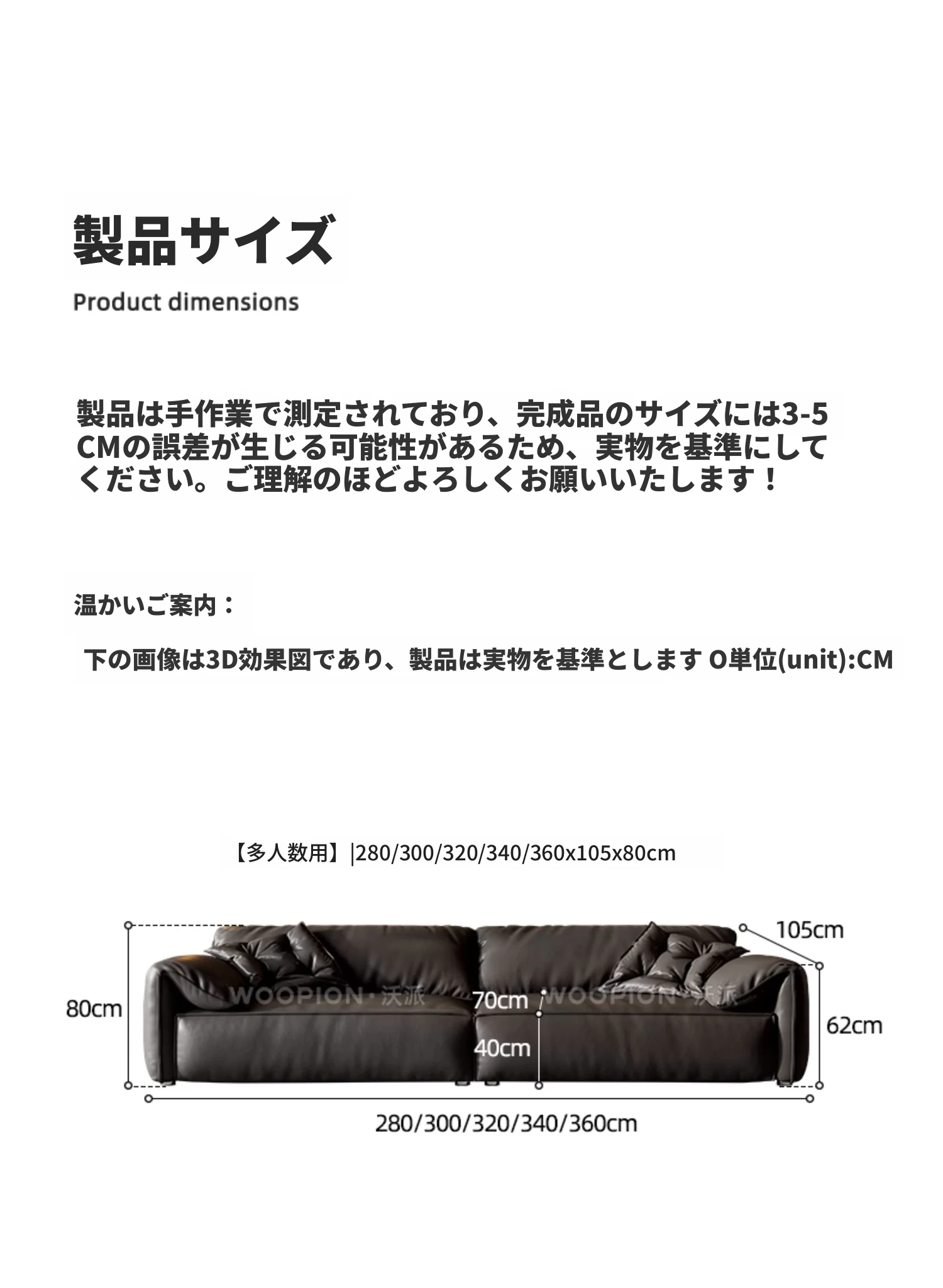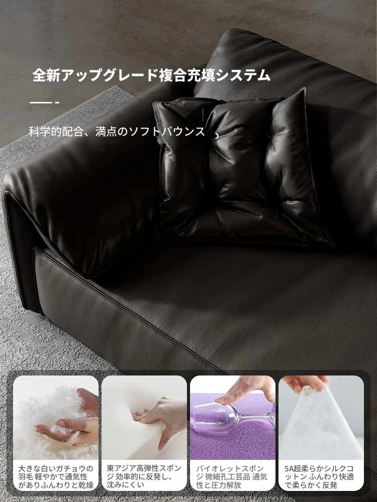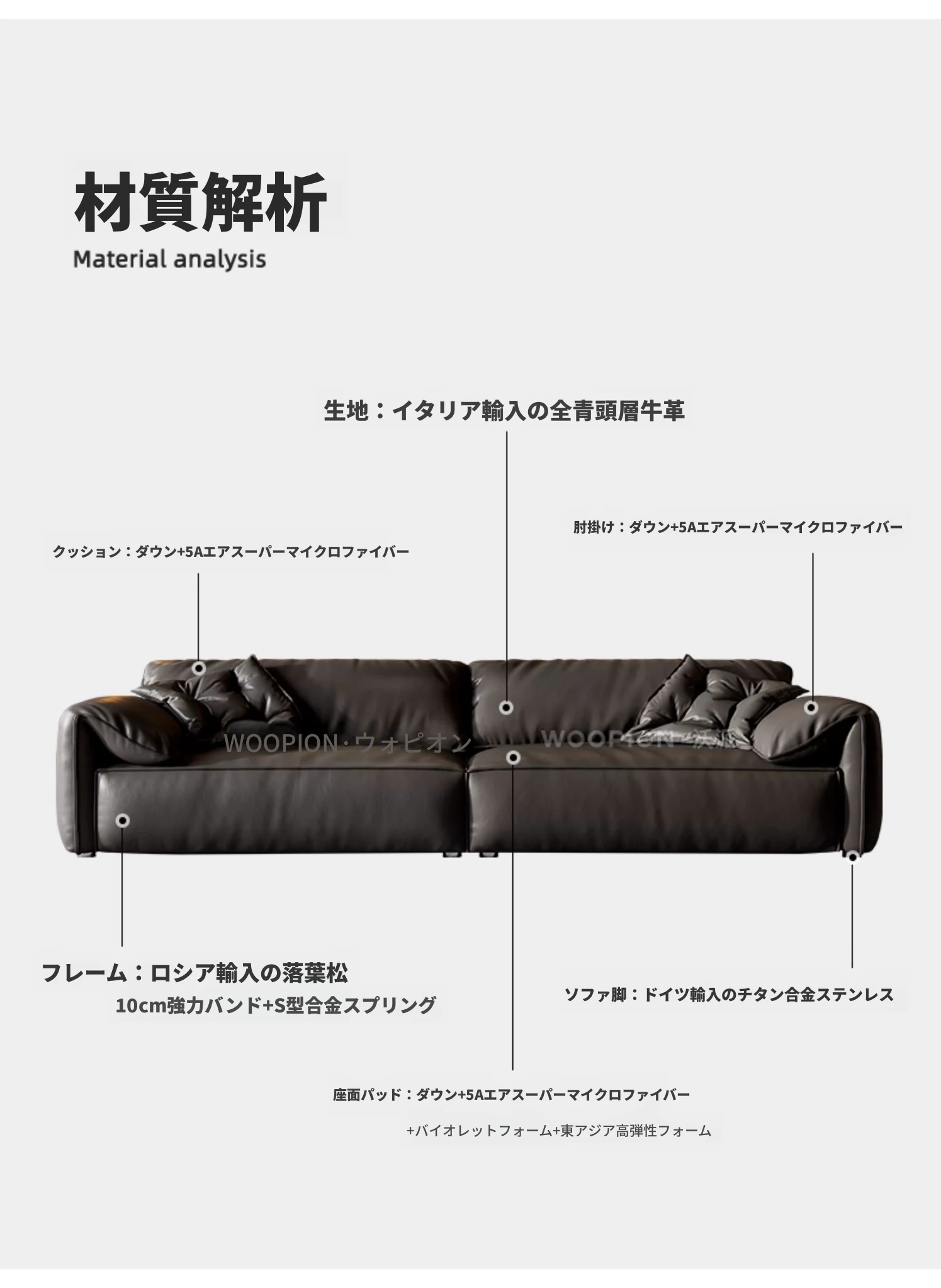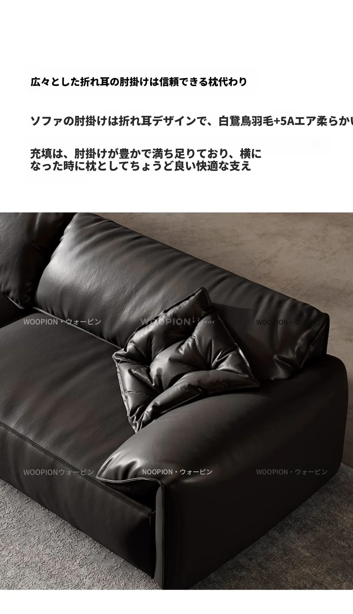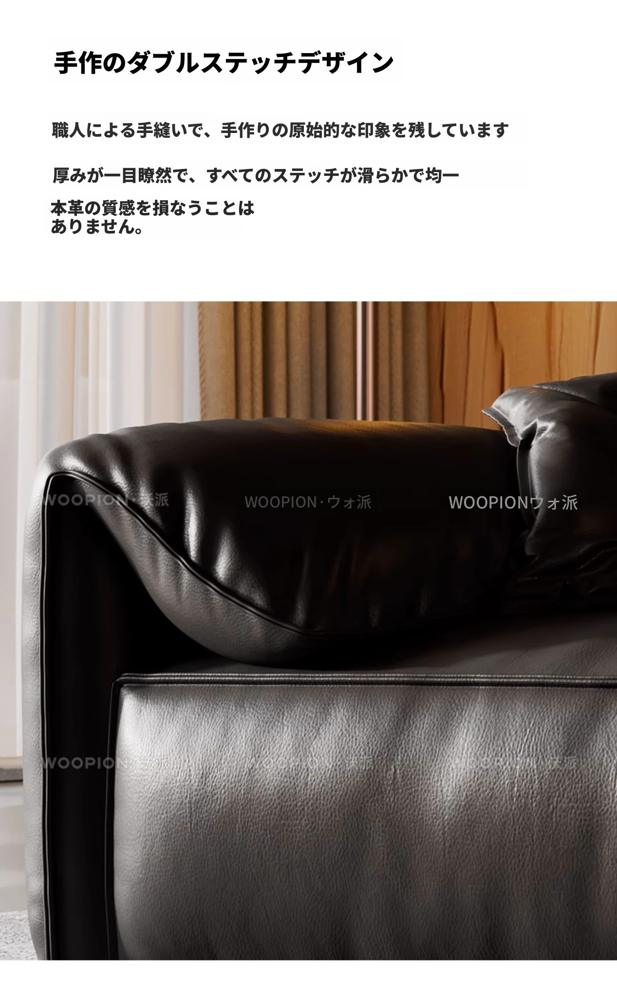 ウォパイ エレファントイヤー 本革ソファ リビング用 イタリアンミニマルデザイン デザイナーズモデル 全青牛革 ブラック仕上げ - 贅沢な座り心地と洗練されたスタイルで、あなたの空間を格上げします!