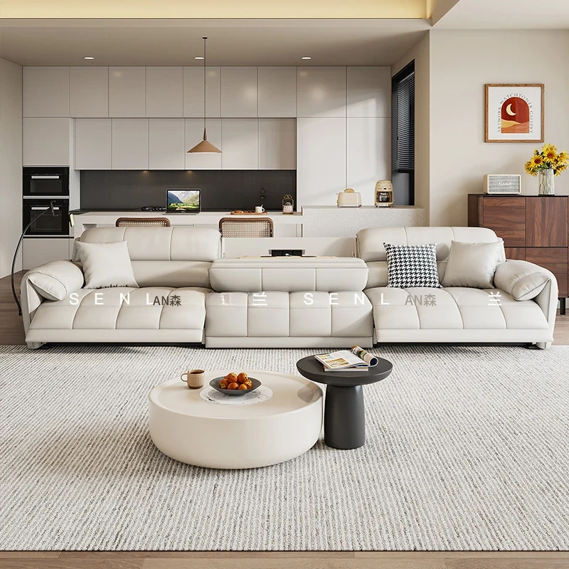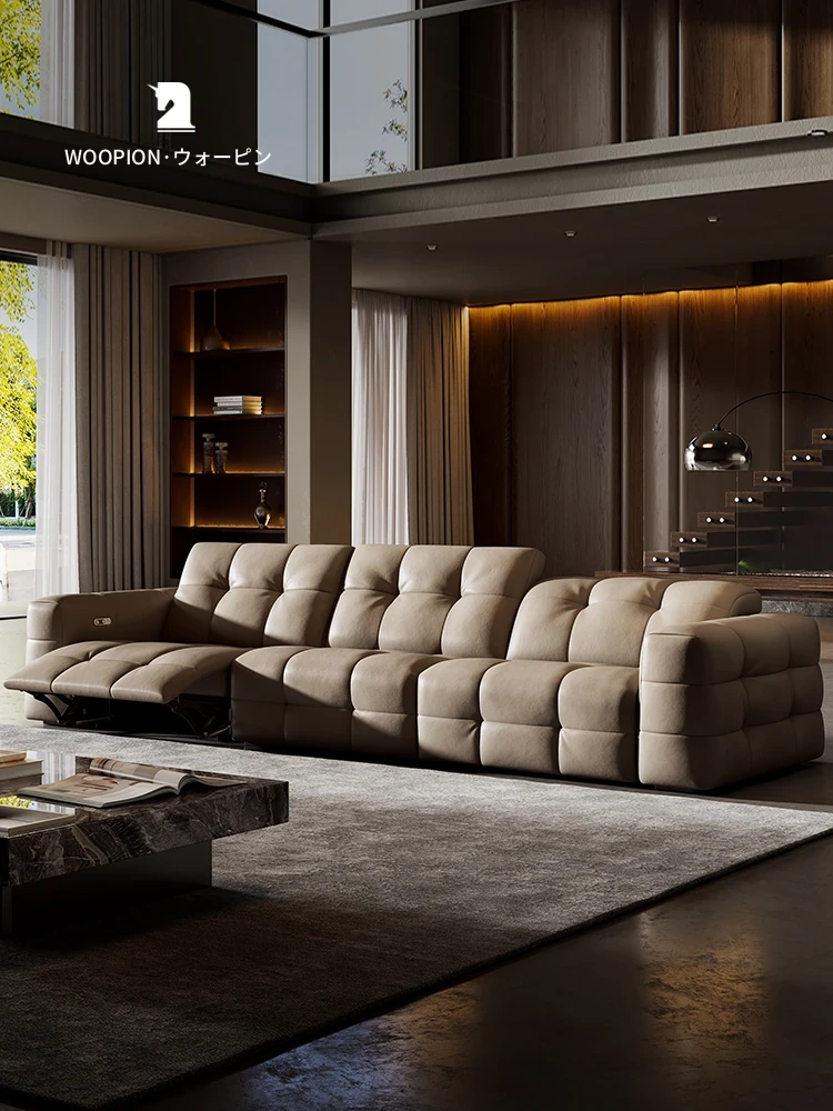 ウォーパイコットンキャンディ電動機能ソファー - 本革トップグレイン牛皮使用、イタリアンミニマルデザインのスマートリビングルームソファ。壁にぴったり寄せられるスリムな直排スタイルで、快適さとスタイルを両立!
