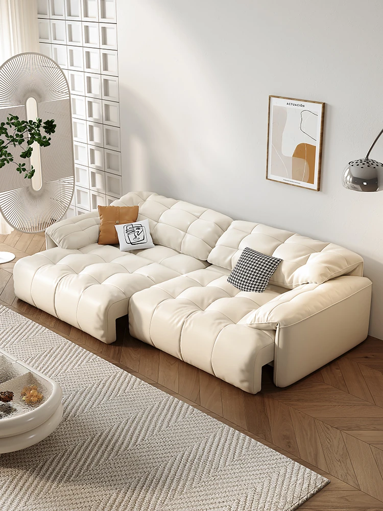 電動伸縮エレファントイヤーソファー 本革クリーム風 多機能ストレートリビングソファベッド おしゃれで快適な空間を演出!