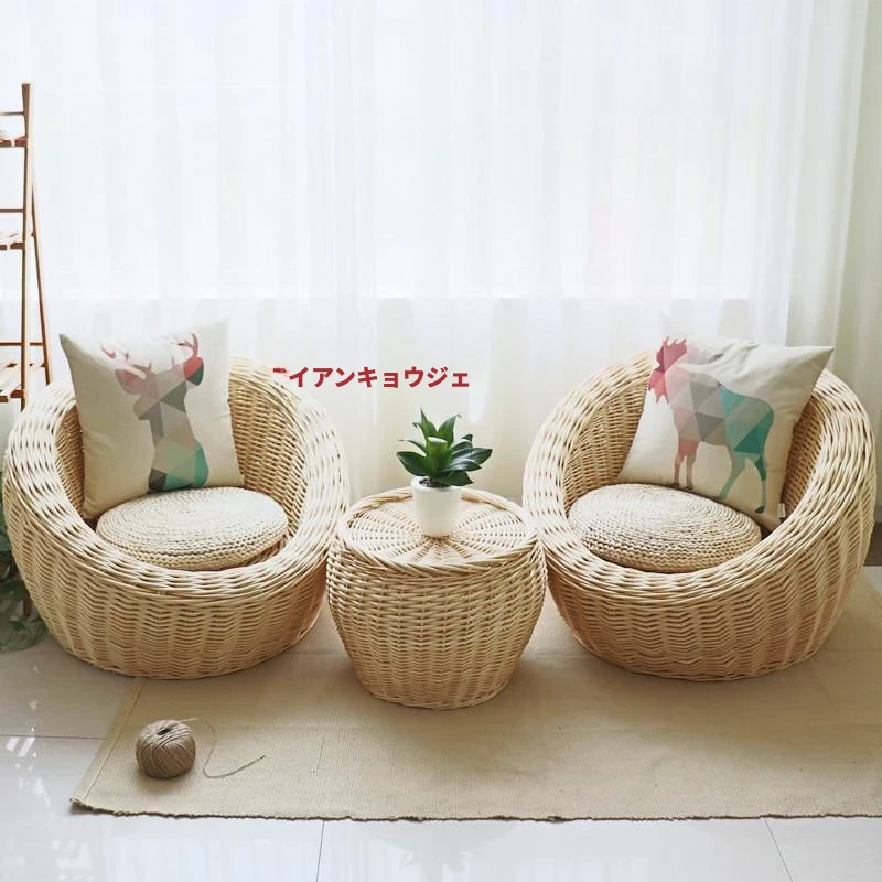 JK 藤編みソファ:おしゃれな寝室やバルコニーに最適!リラックスできるラウンジソファで、個性的でクリエイティブなデザイン。シングル&ダブルサイズの選べるバリエーション、田舎風のテーブルと一緒に、心地よい空間を演出します。