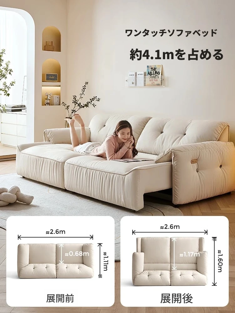 ベグラン雲のような電動ソファ、小型住宅に最適なシンプルなクリーム風デザイン、ふわふわマシュマロのような快適さを提供するファーストクラス直列大ソファ。あなたのリビングを特別な空間に変えます!