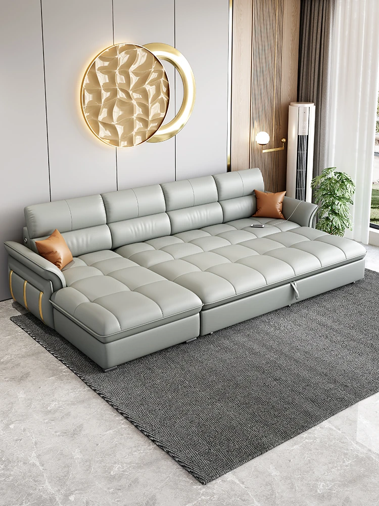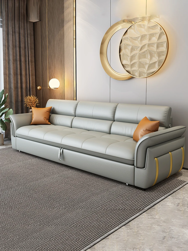 真皮製の多機能折りたたみソファベッド|小型住宅に最適な軽やかなラグジュアリー感|モダンでシンプルなリビングにぴったり!