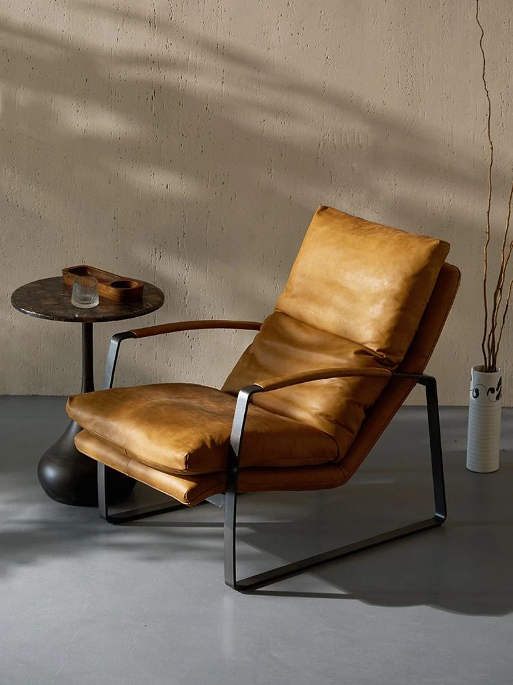 【即納】セントロメイ ビンテージ風 シングル カジュアルチェア リビング用 アイアン製 ラウンジチェア デザイナー本革 アンティークソファチェア くつろぎのひとときをお楽しみください!