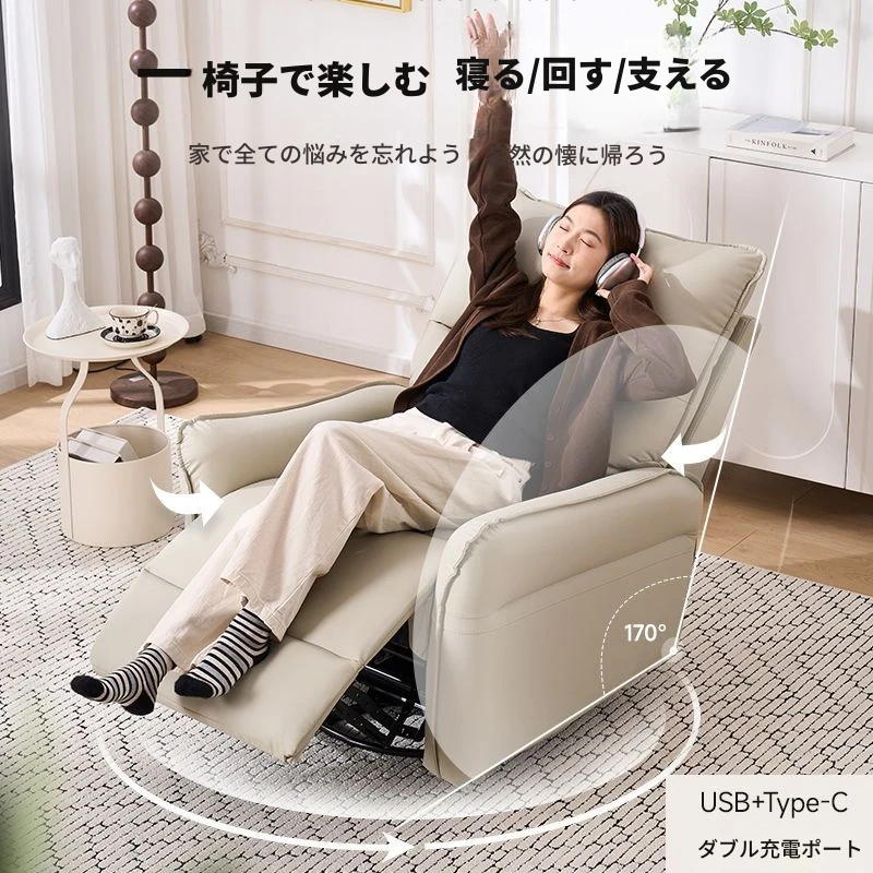 アジアスタイルのリラックス電動ソファ!伸縮式多機能本革一人用チェア、リビングにぴったりのくつろぎロッキングチェア。快適さとスタイルを兼ね備えた、あなたの特別な空間を演出します!